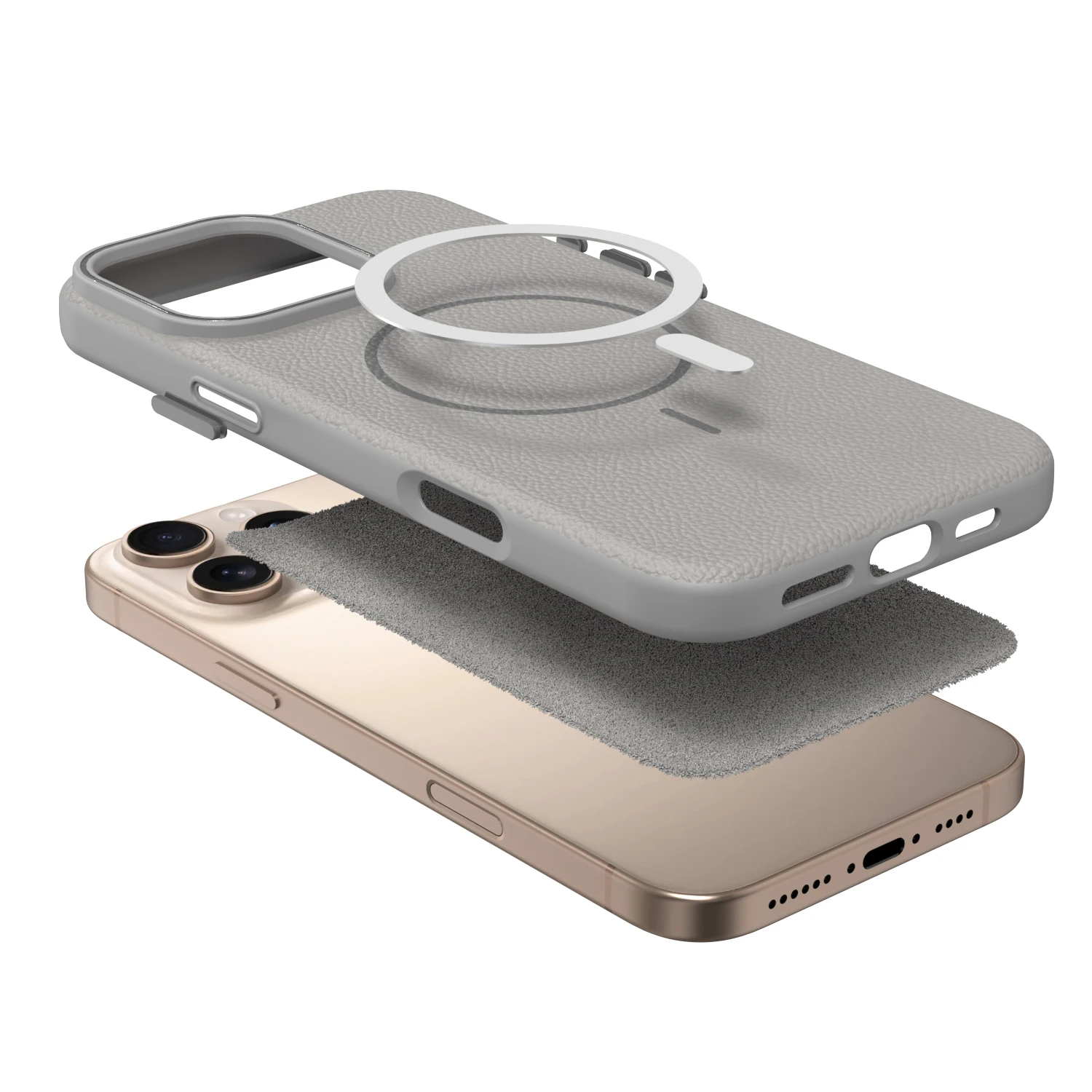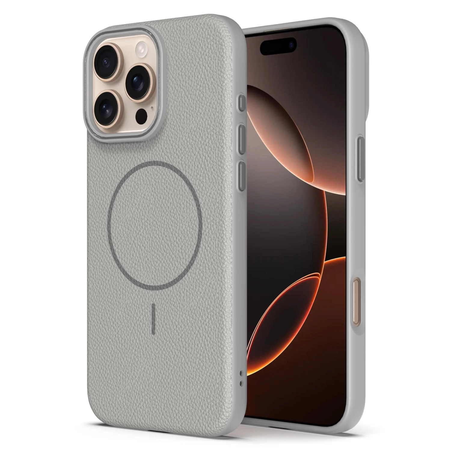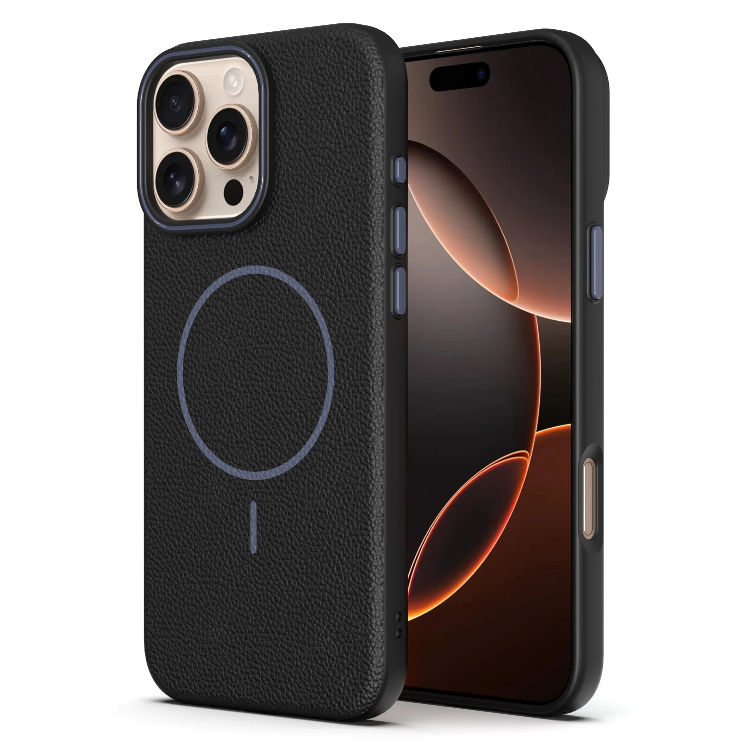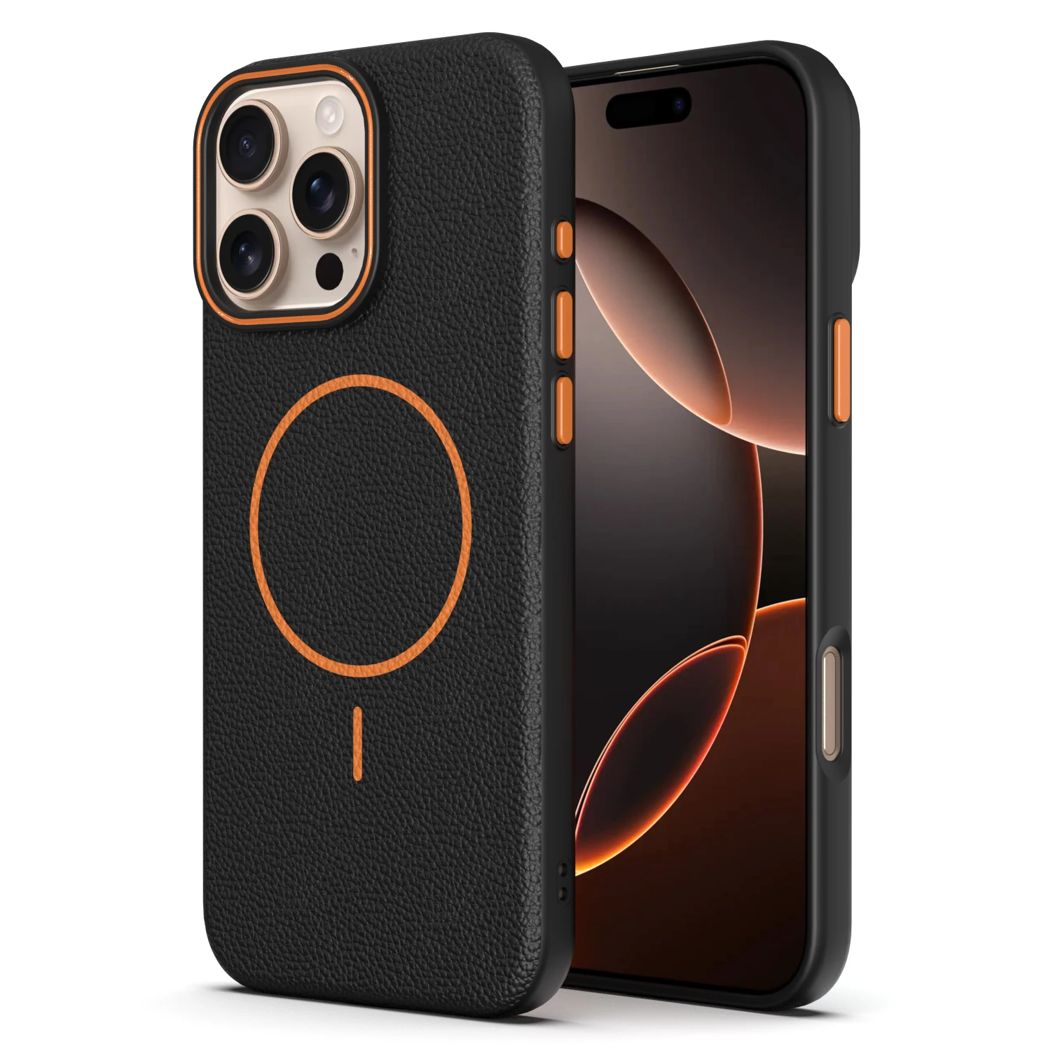 Funda de carga inalámbrica magnética Magsafe con textura de cuero Business Lichee para iPhone 16 14 15 13 12 11 Pro Max Plus, funda trasera suave
