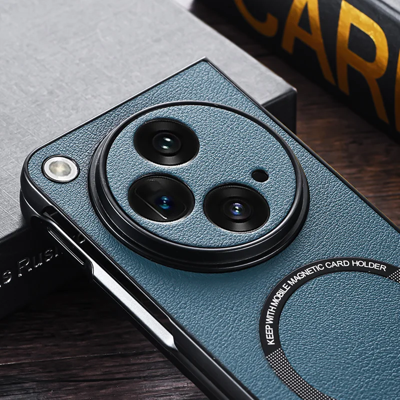 Funda de carga inalámbrica magnética de plástico duro con protección de lente a prueba de golpes de cuero PU Premium para OPPO FIND N3 ONEPLUS abierto
