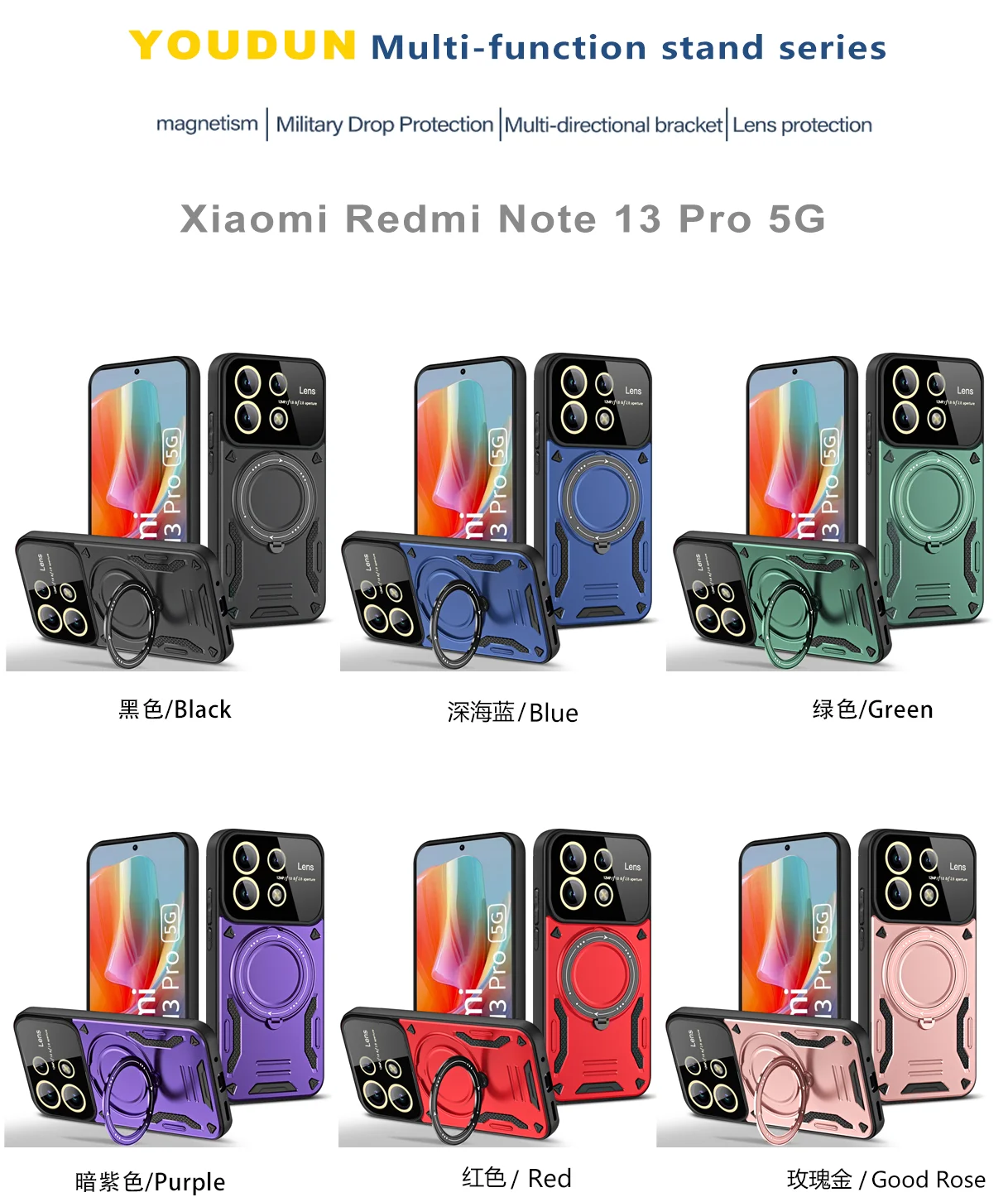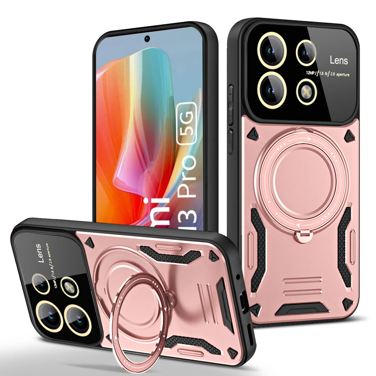 Funda de carga inalámbrica Magsafe de armadura de lujo para Redmi Note13 Pro Plus Note 13 4G 5G cubierta de parachoques con soporte de anillo magnético
