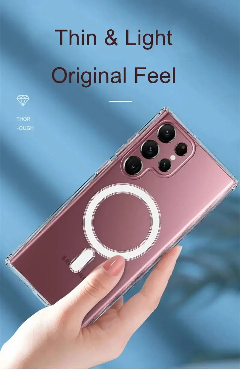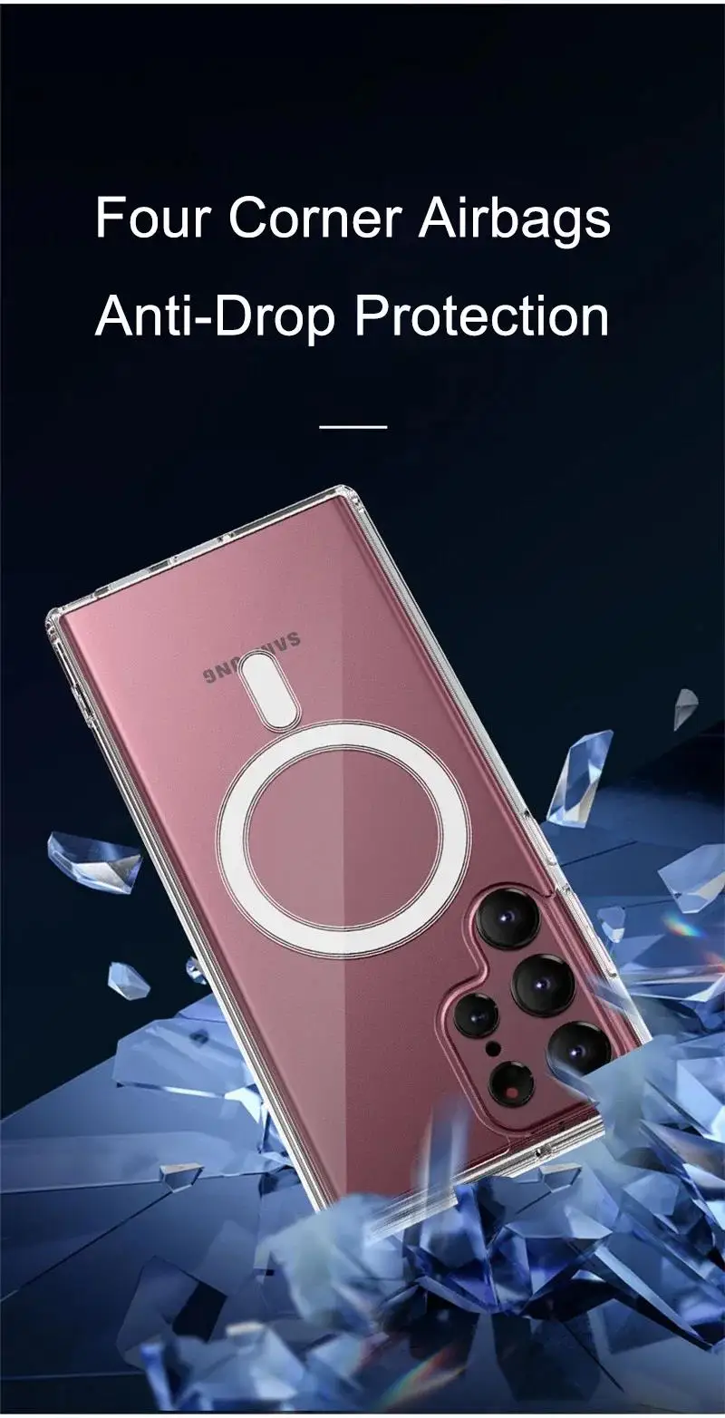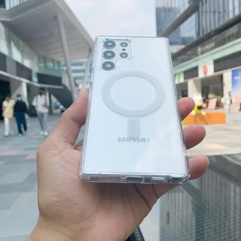 Funda de carga inalámbrica Magsafe magnética transparente a la moda para Samsung Galaxy S25 S24 S23 S22 S21 S20 Plus FE Ultra cubierta a prueba de golpes