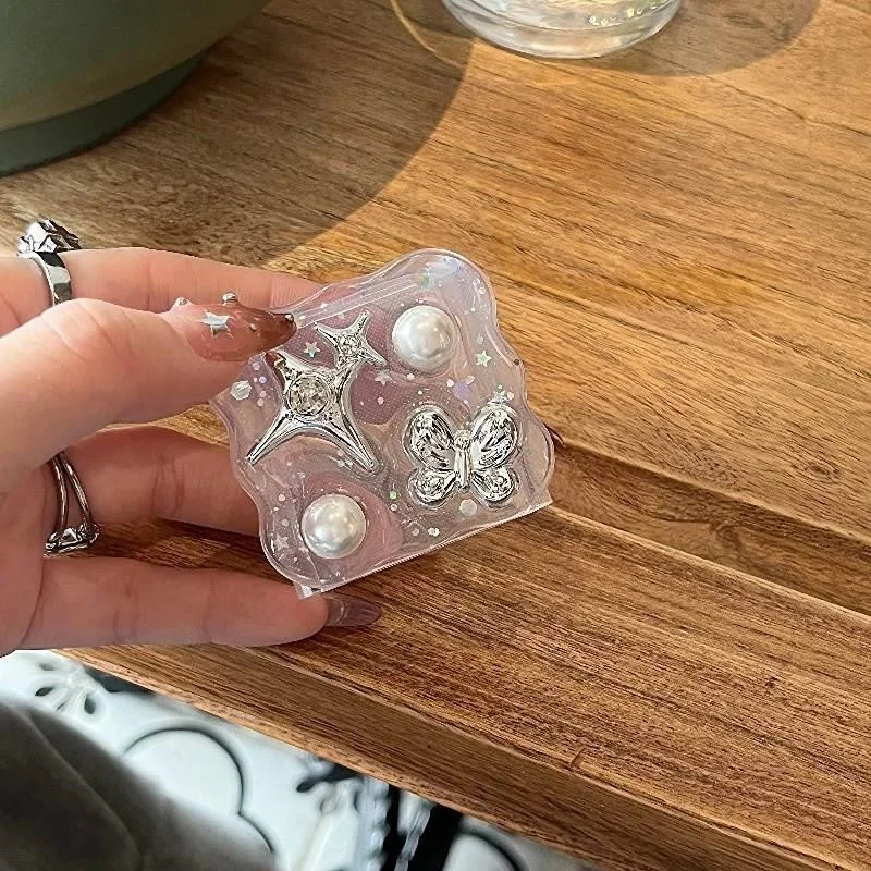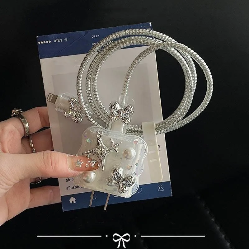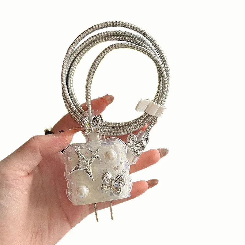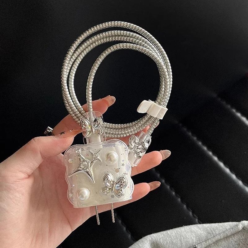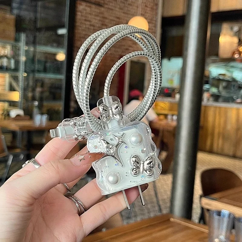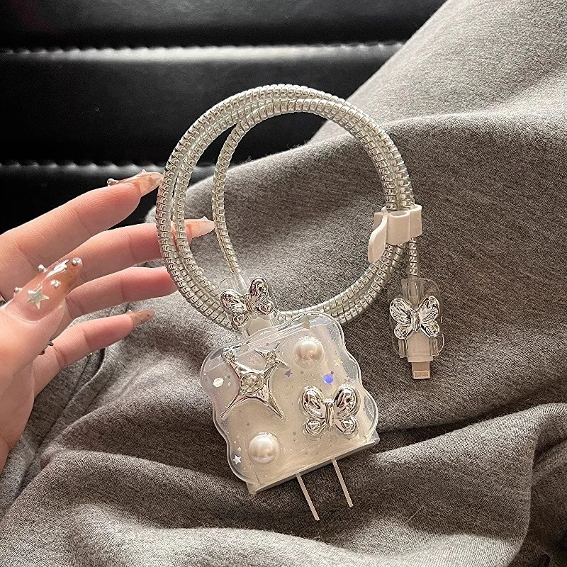 Funda de cargador de mariposa epoxi con purpurina de lujo para IPhone 12, 13, 14, 15, 16, 18/20W, funda protectora de carga, acceso al funda del cargador