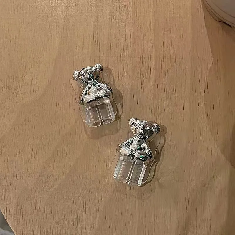Funda de cargador de oso plateado 3D bonito de Corea para IPhone 11 12 13 14 15 18W-20W Correa de carga cubierta de protección brillante funda de cargador