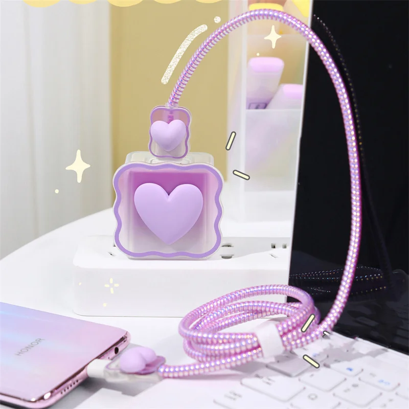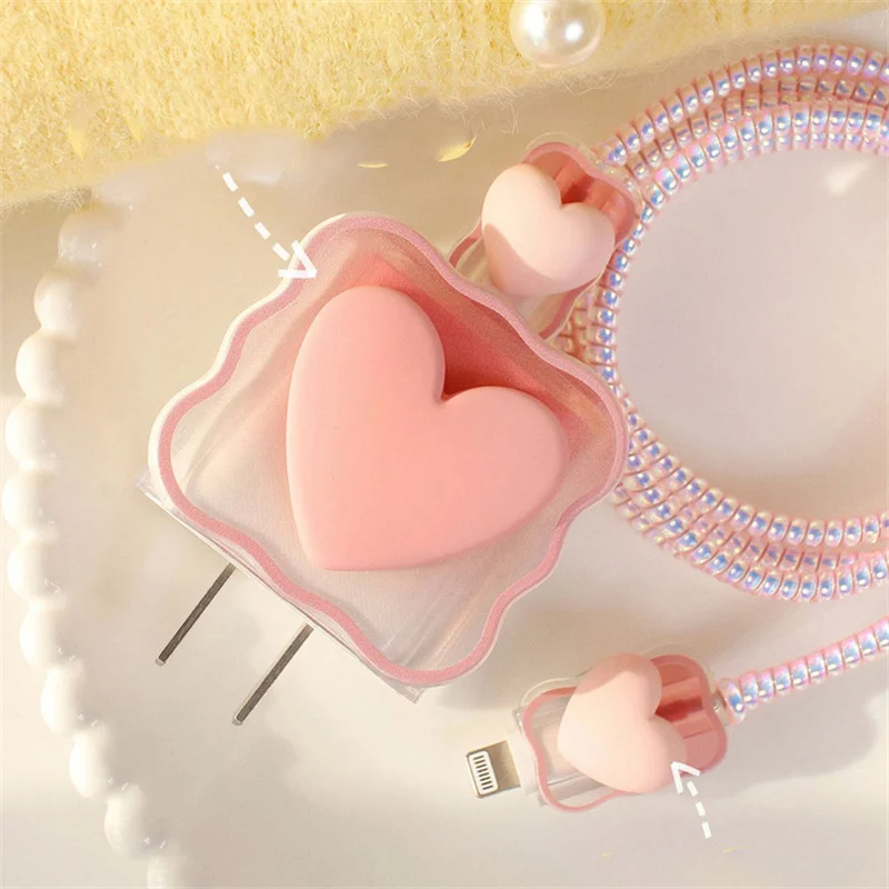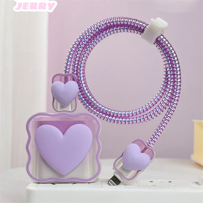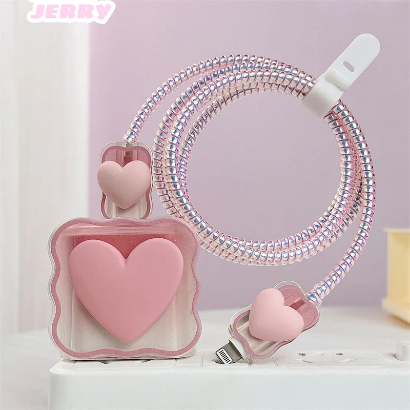 Funda de cargador de silicona suave transparente de Color degradado para IPhone 11, 12, 18W-20W, cubierta de protección de carga rápida, funda de cargador de corazón de amor