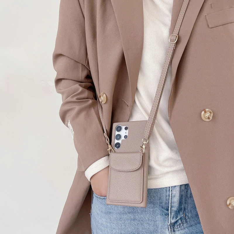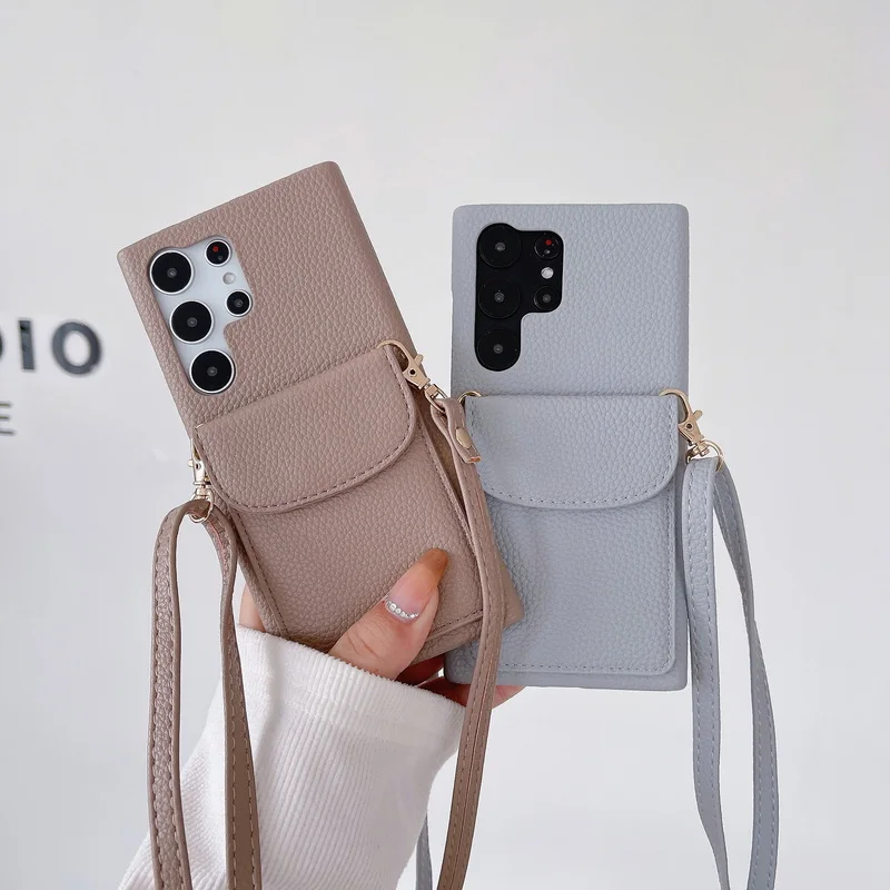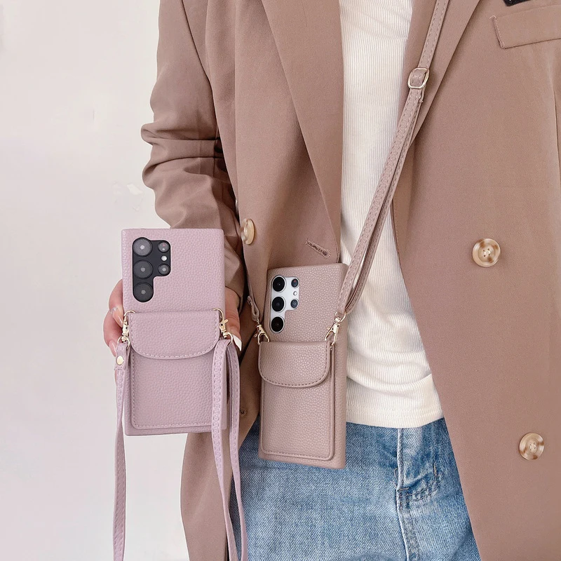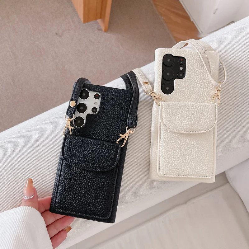 Comprar Funda cartera con patrón de piel de lichi cruzado para Samsung Galaxy S23 Ultra S22 Plus S23 S22 A54 A53 5G A33 A13