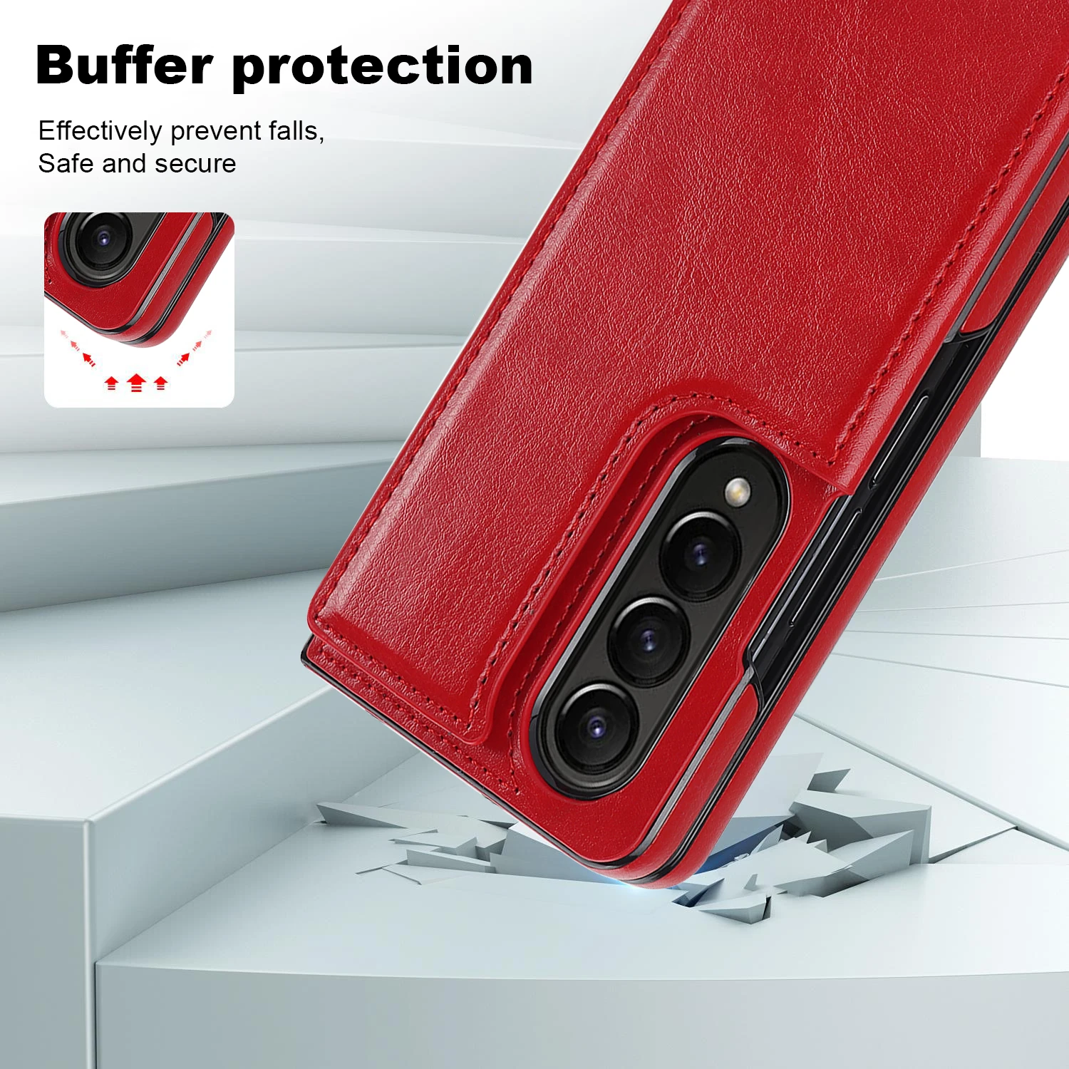 Comprar Funda de cartera con tapa de tarjetas para Samsung Galaxy Z Fold 5 4 3 5G Fold5 Fold4, bolsa de tarjeta de doble botón magnético, Fundas de soporte de bolsillo