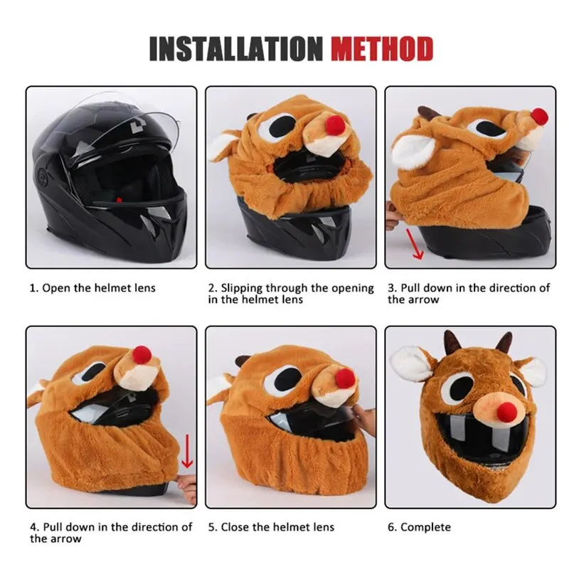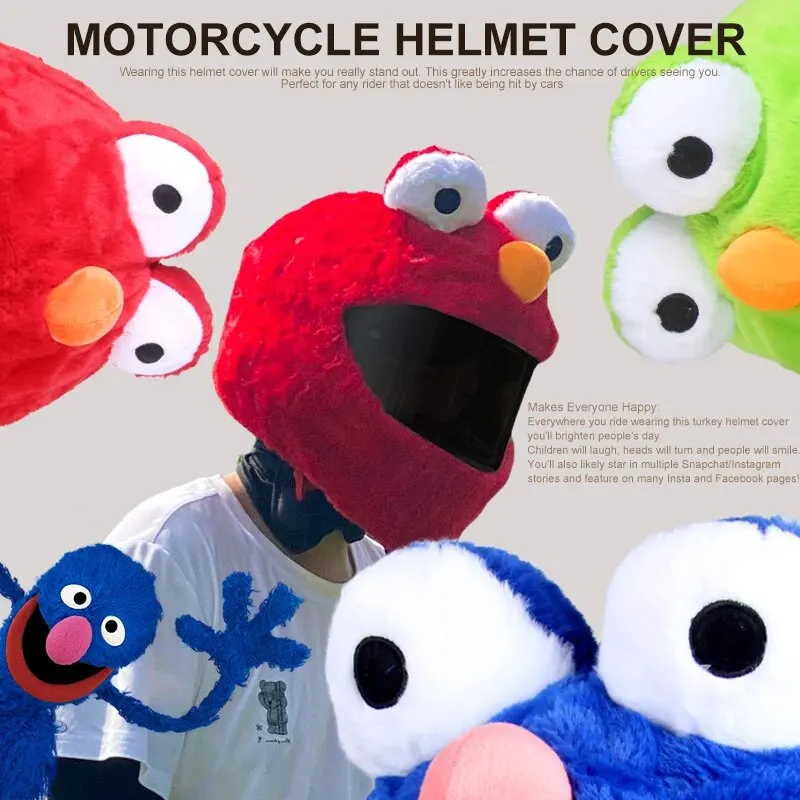 Funda para casco de motocicleta, bonitos cascos de felpa de dibujos animados, sombrero con orejas flexibles grandes locas, funda protectora para casco divertido para montar