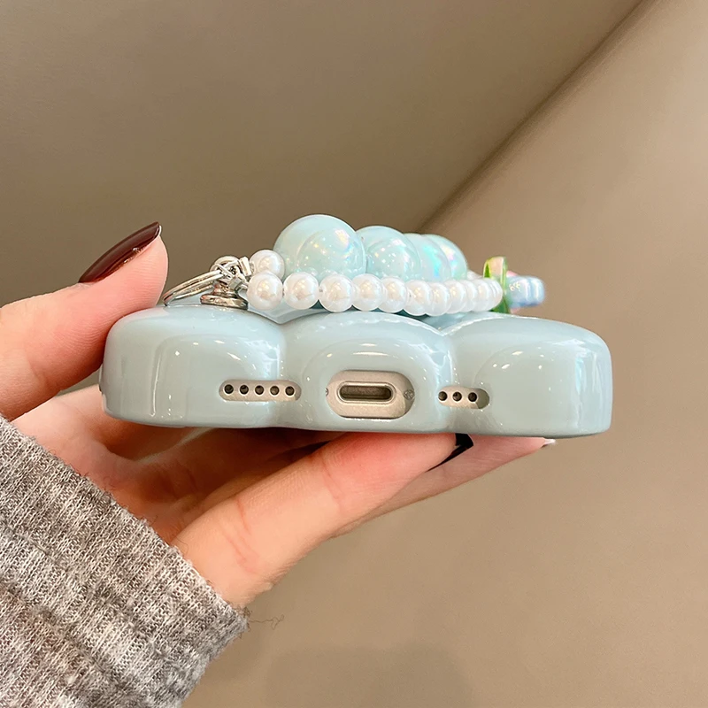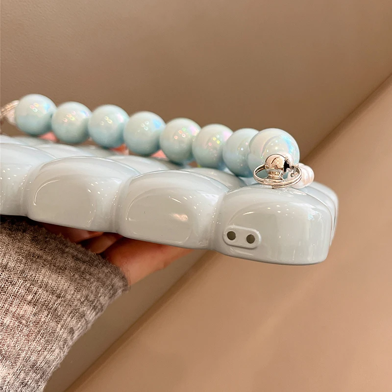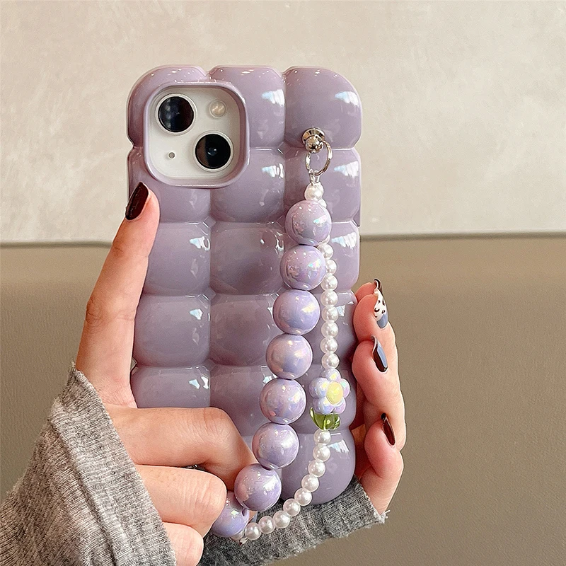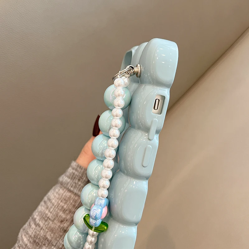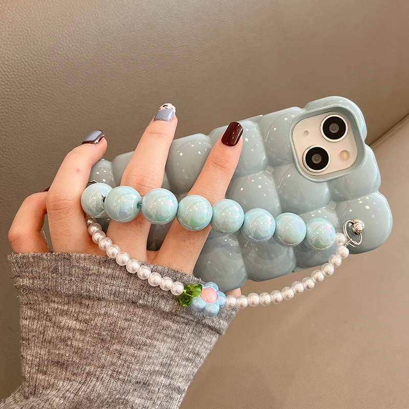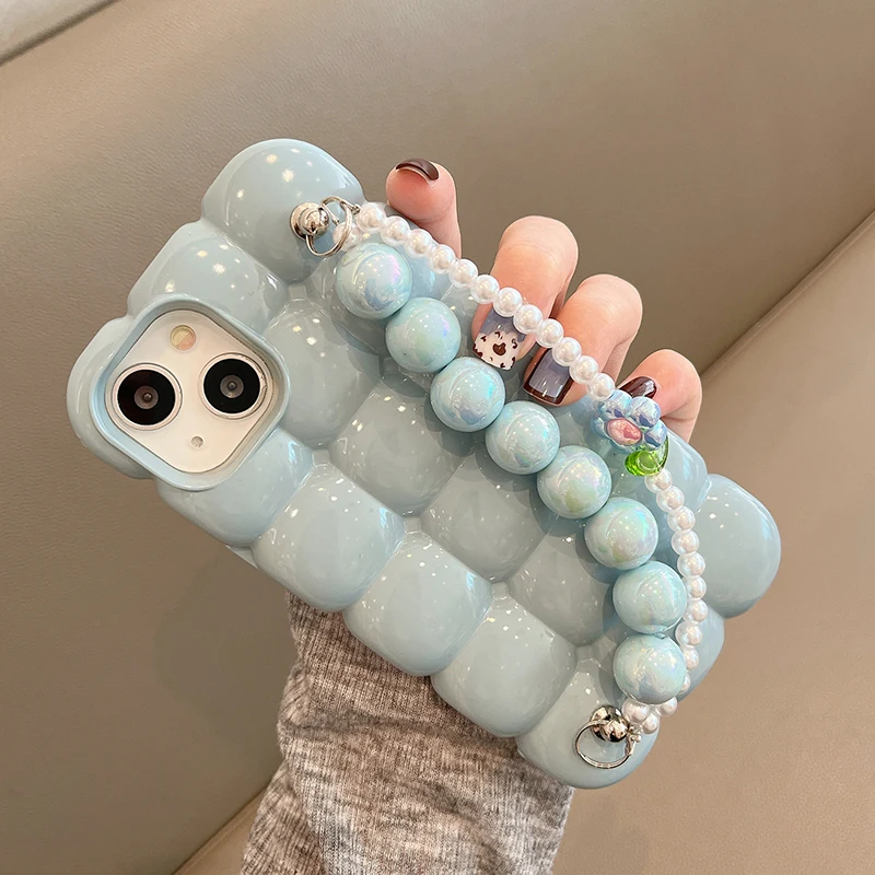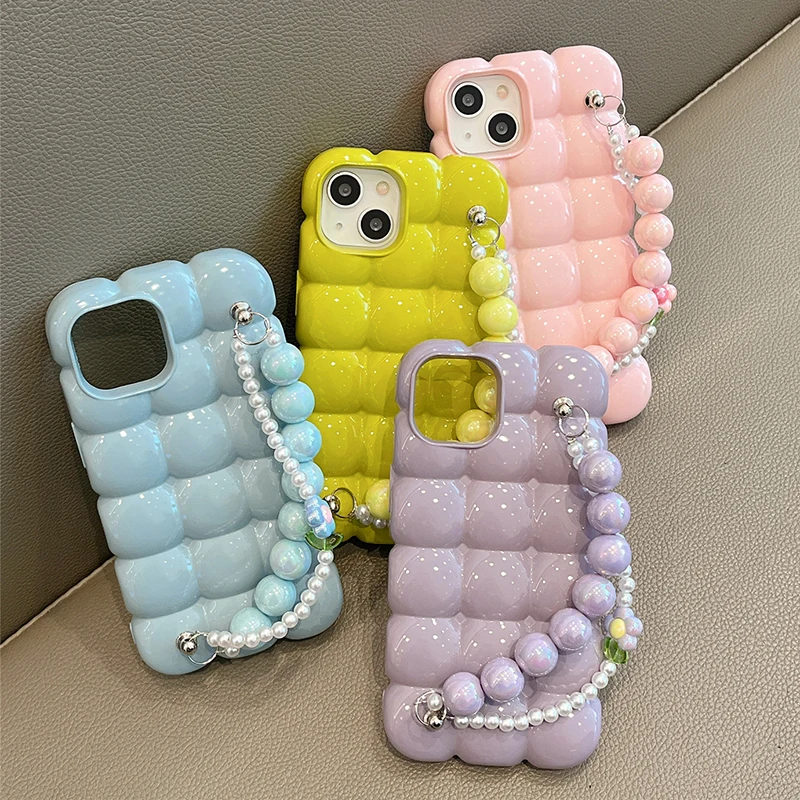 Lujo perla pulsera cadena 3D hielo celosía caso para iPhone 13 Pro Max 14 11 12 a prueba de golpes teléfono contraportada Funda