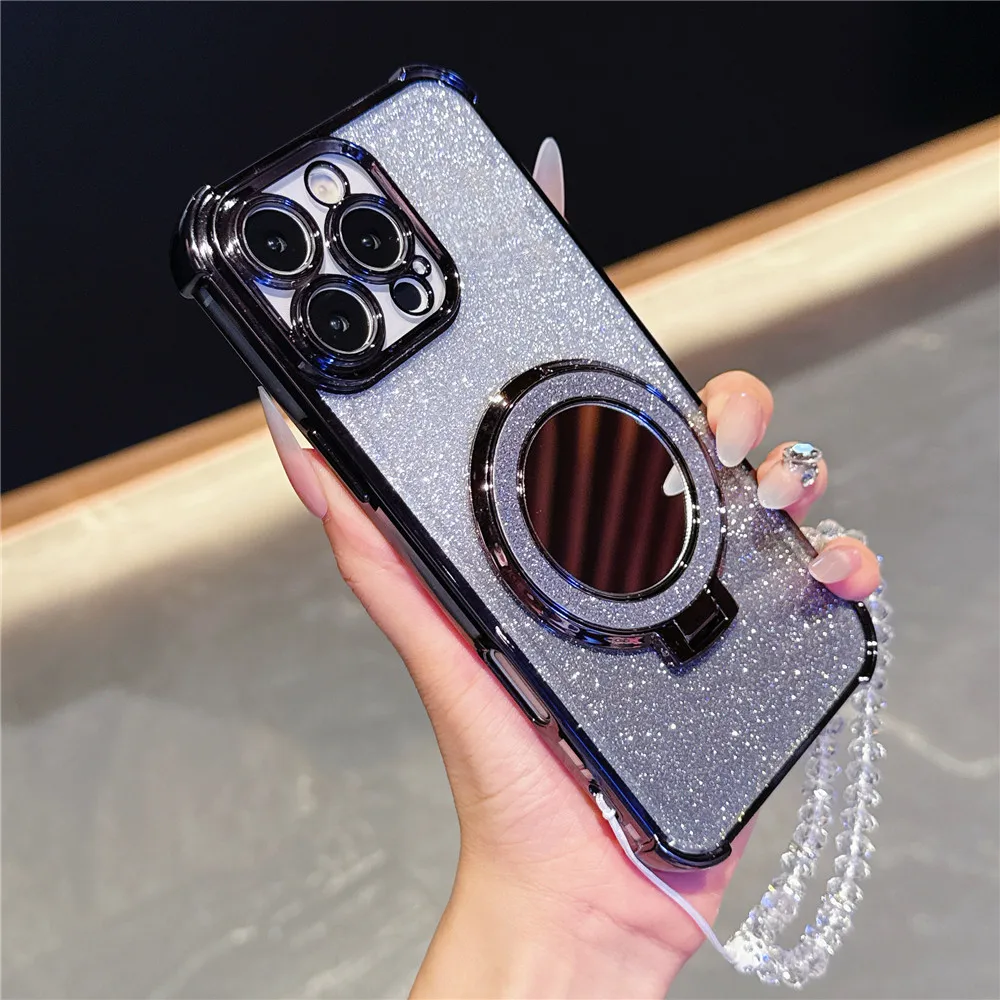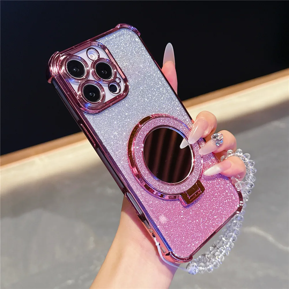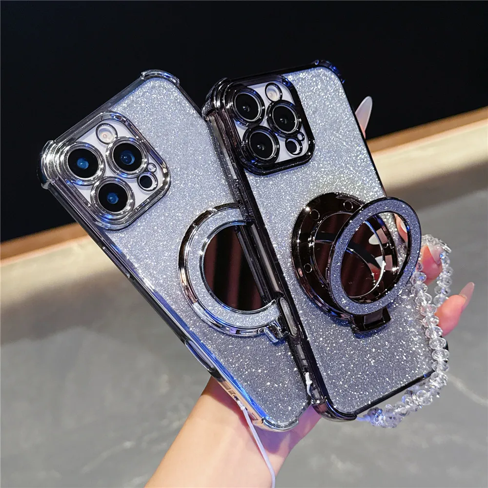 Pulsera de cristal funda chapada a prueba de golpes para Samsung S25 S24 S23 S22 S21 S20 Plus FE Ultra S25 cubierta con soporte magnético para espejo de borde