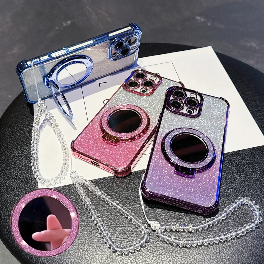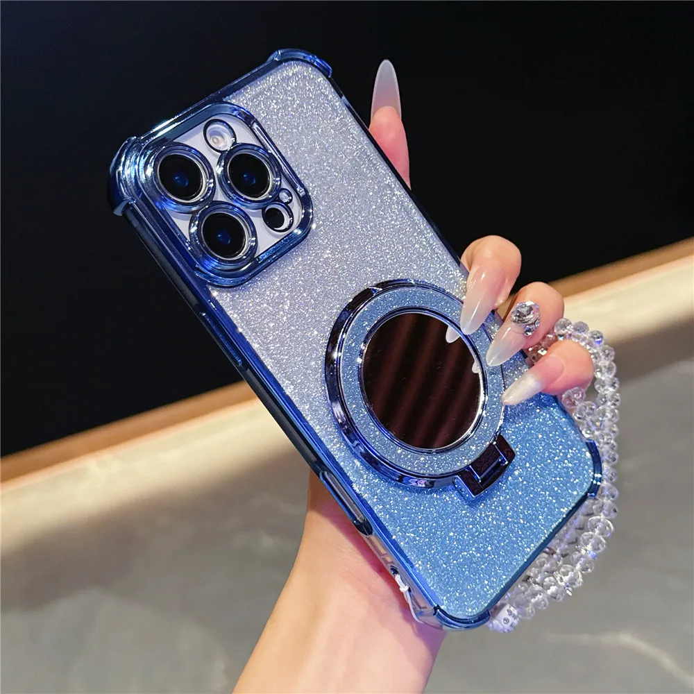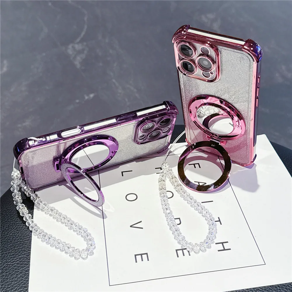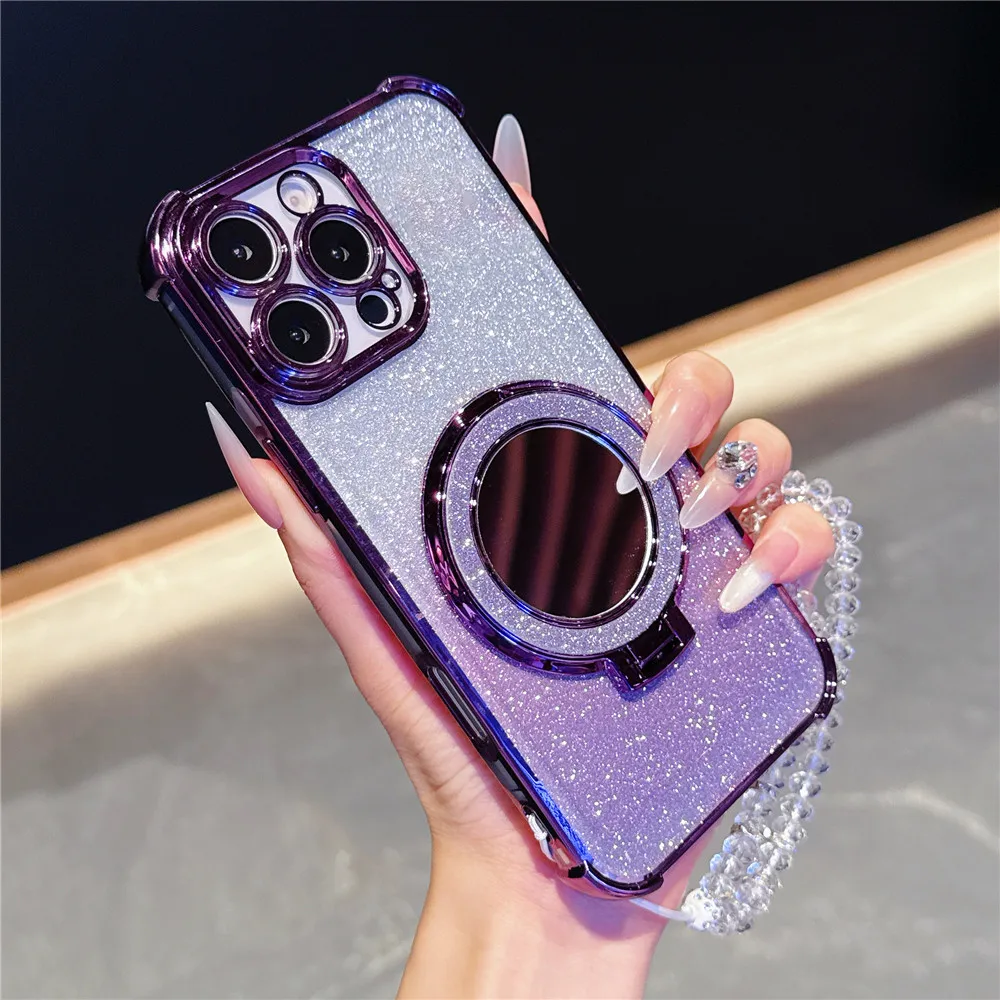 Pulsera de cristal funda chapada a prueba de golpes para Samsung S25 S24 S23 S22 S21 S20 Plus FE Ultra S25 cubierta con soporte magnético para espejo de borde