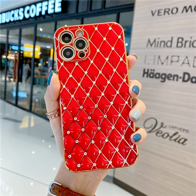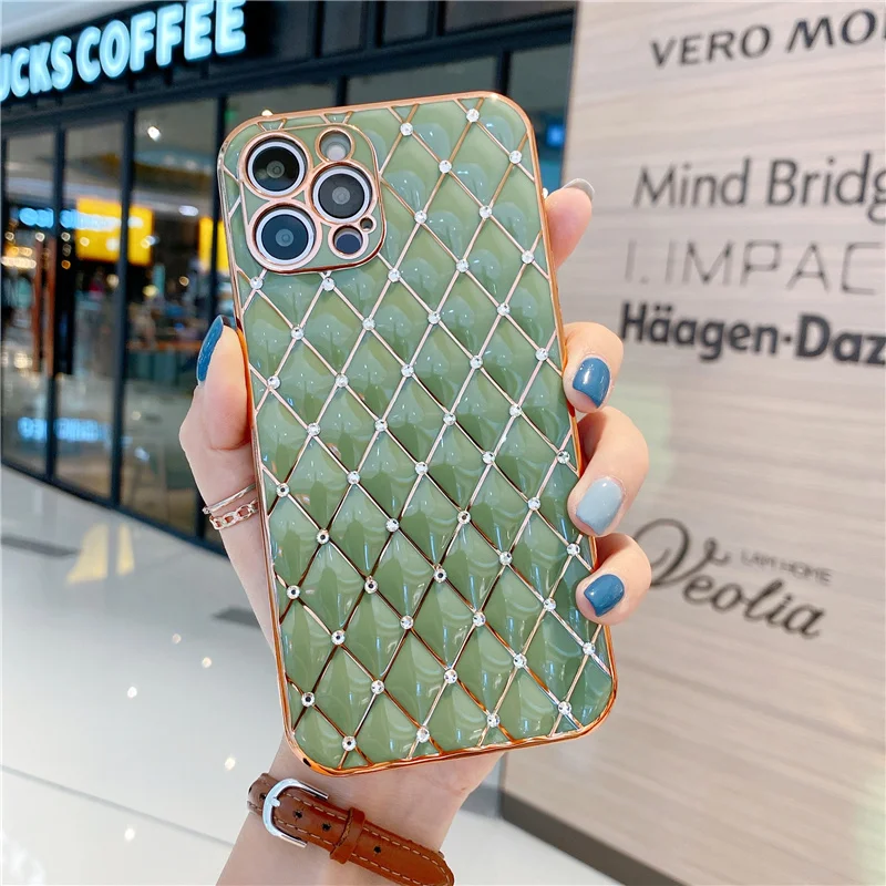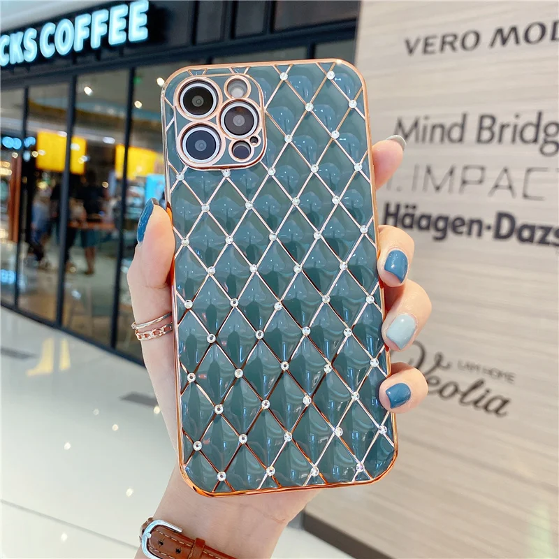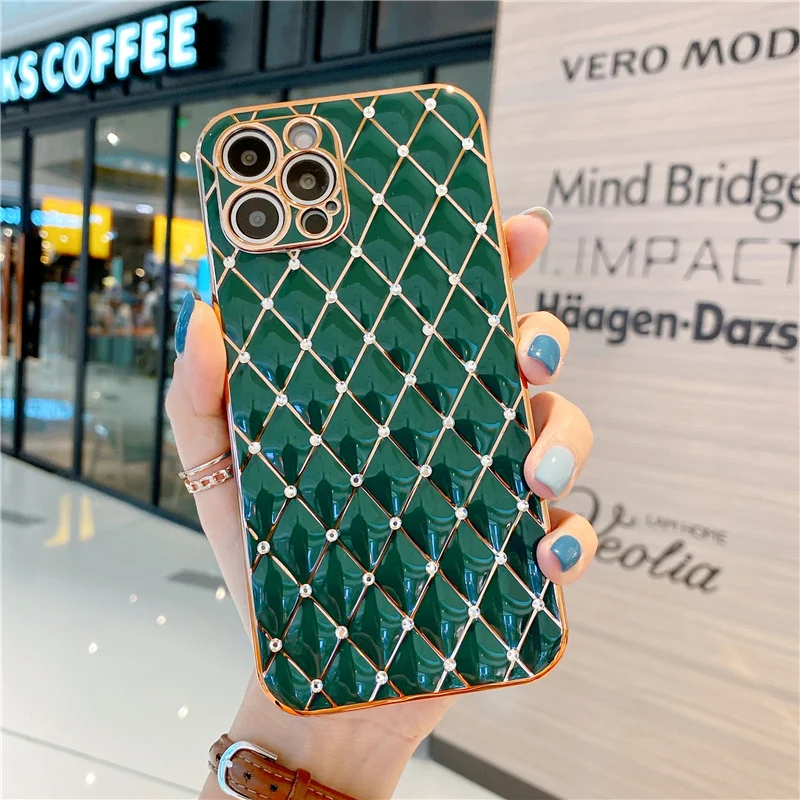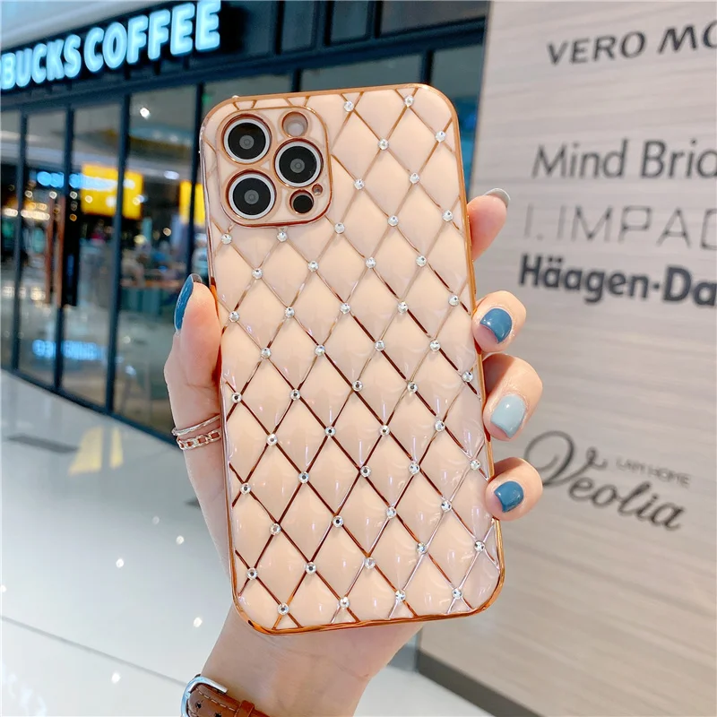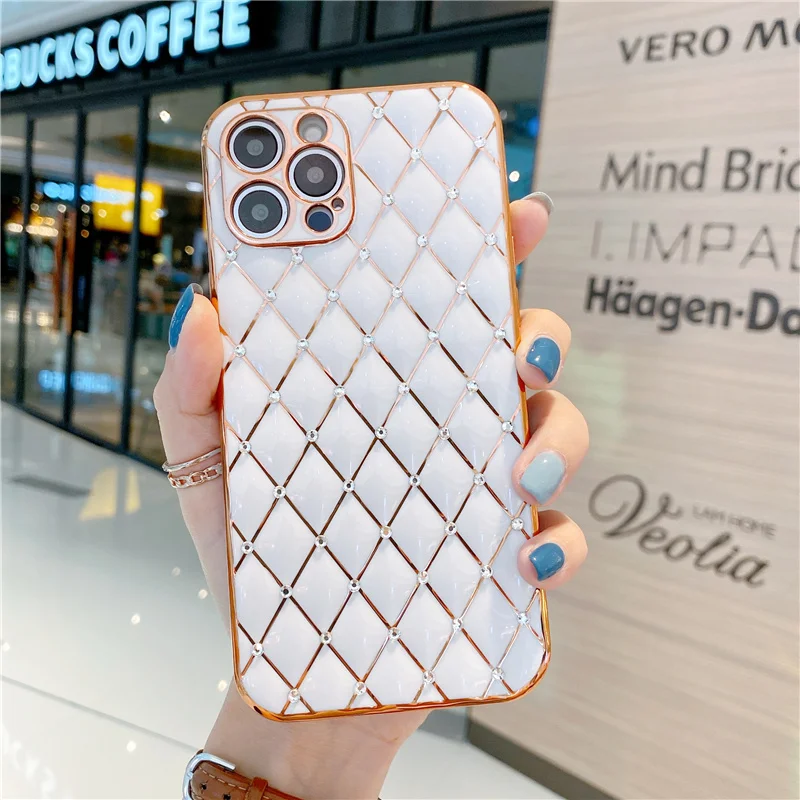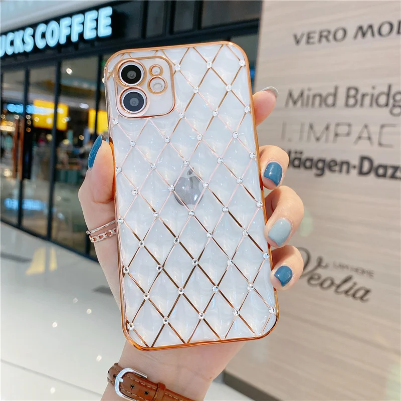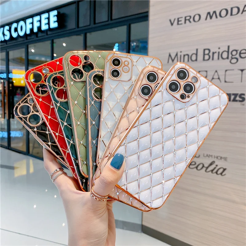 Comprar Funda chapada en oro de lujo para iPhone, 11 Pro Max, 8 Plus, 7, XR, XS, X, funda de silicona con brillo de diamante para iPhone 12 Pro SE 2020