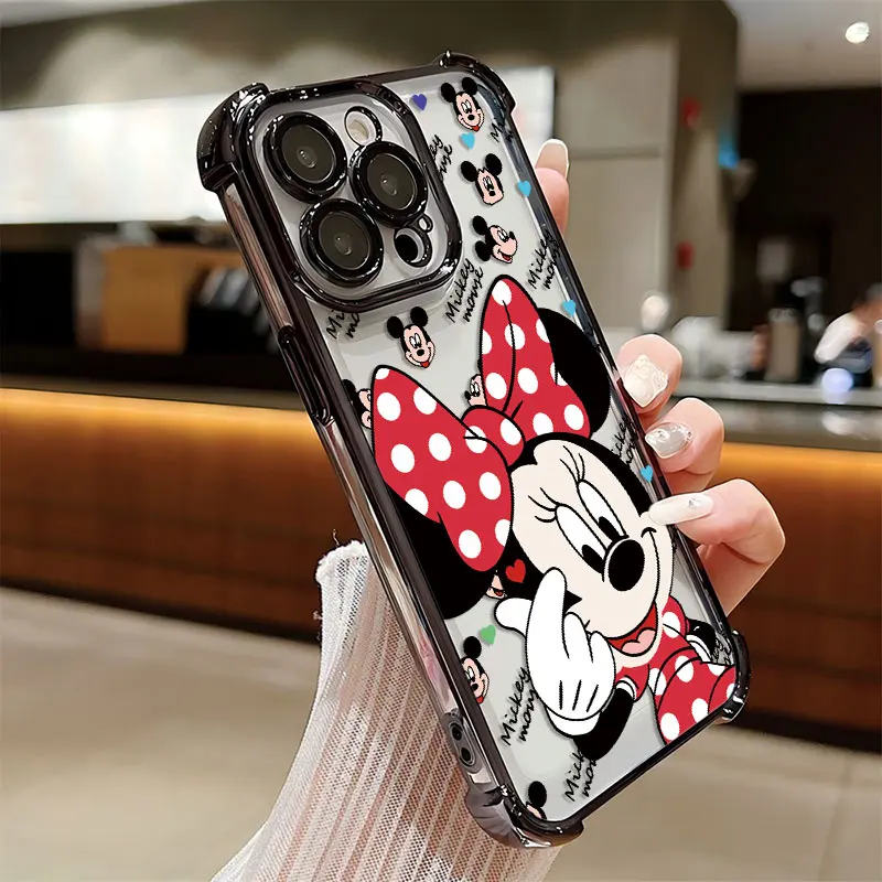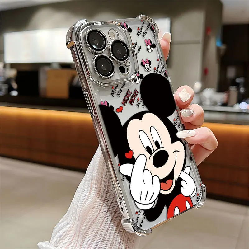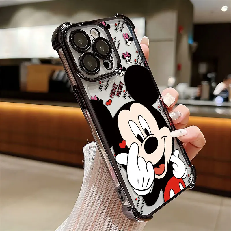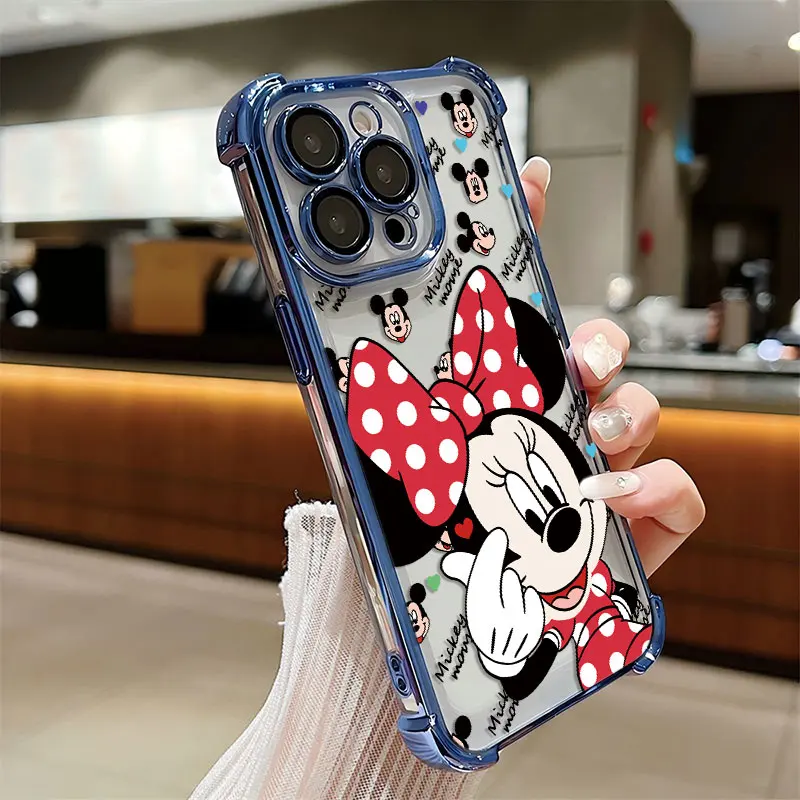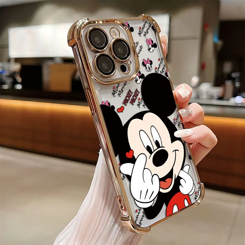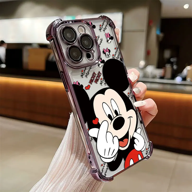 Funda chapada de Mickey Minnie a la moda para iPhone 16 15 14 13 12 11 Pro Max X XR XSMax 7 8 Plus, funda trasera anticaída Airabag