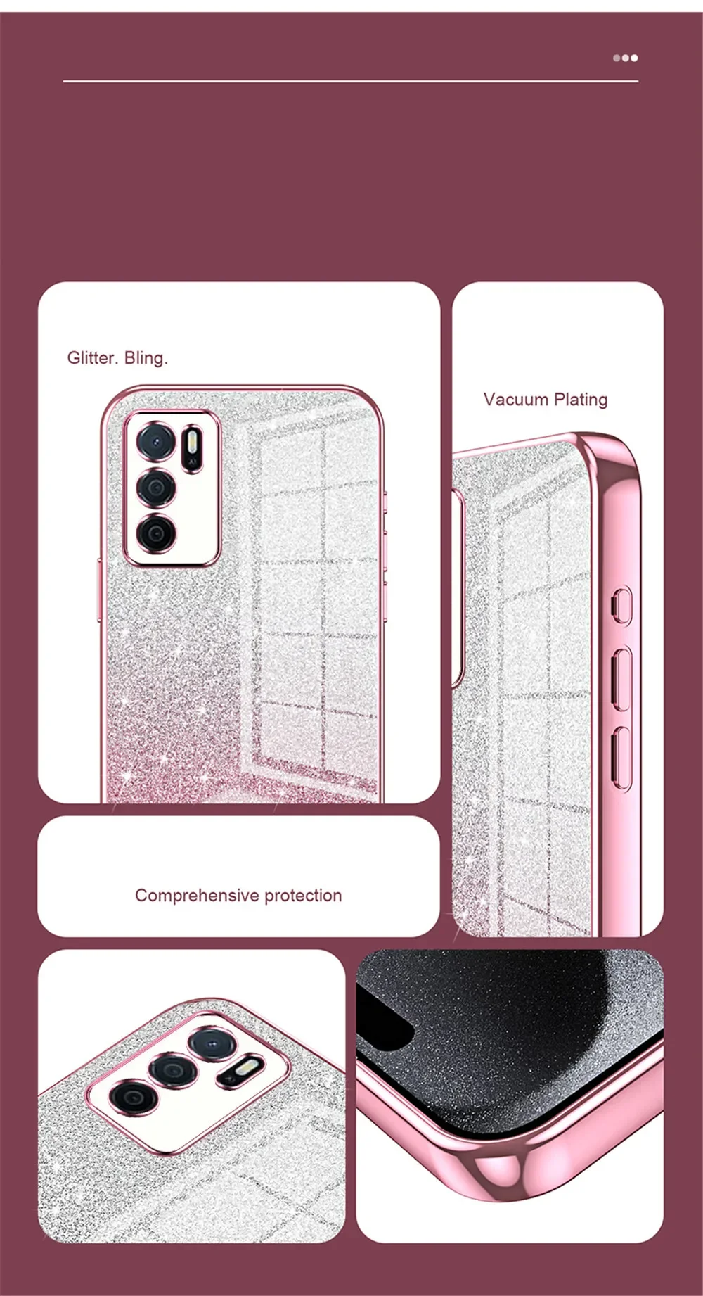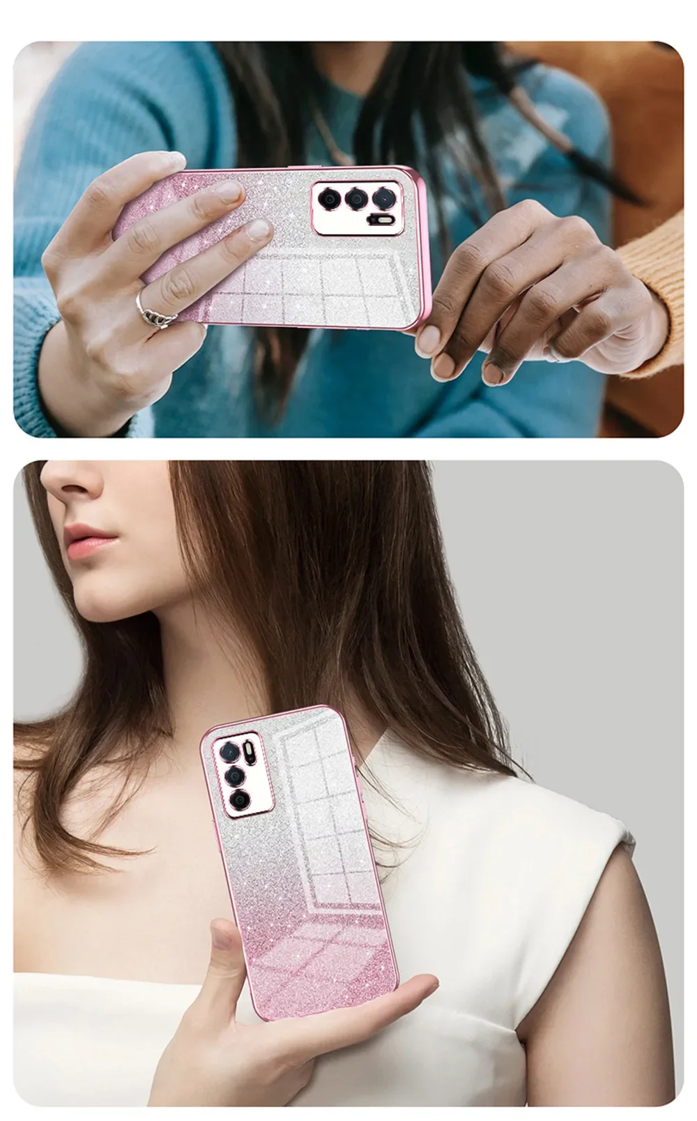 Comprar Funda chapada con purpurina degradada de lujo para OPPO A98 A78 A77 A96 A16 A54S A53S A15 A17 A5 A9 A8 A31 2020, funda blanda