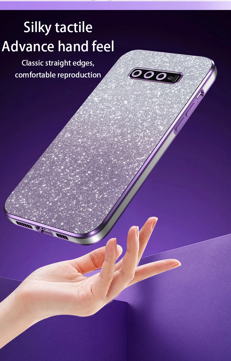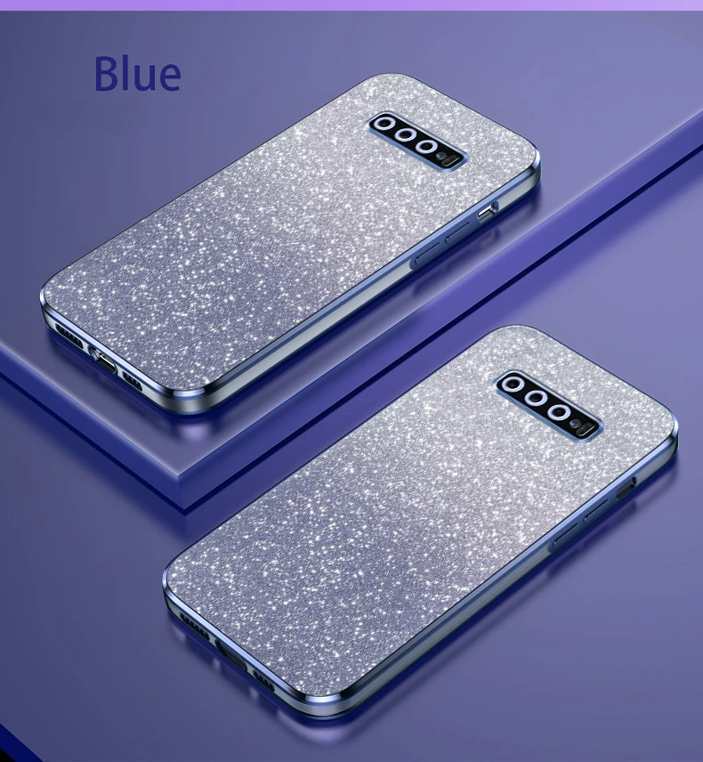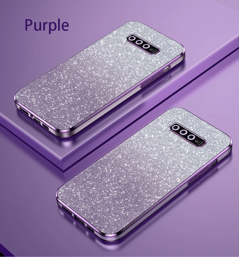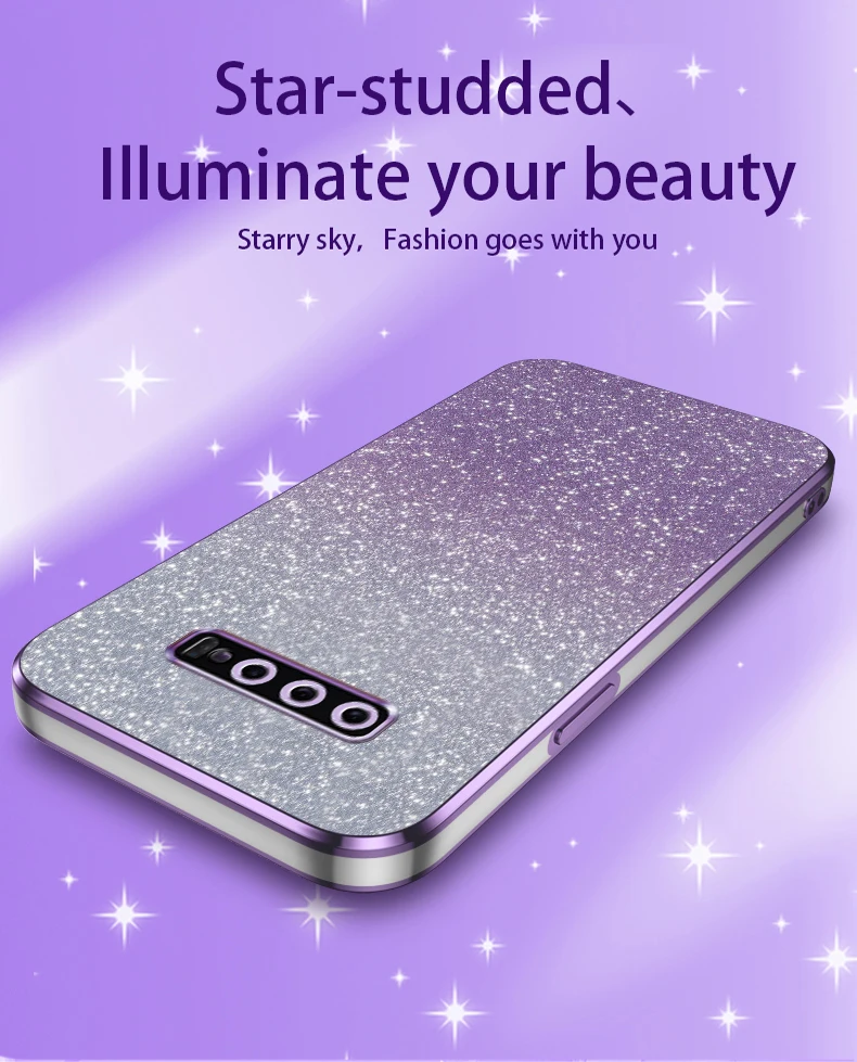 Comprar Funda chapada con purpurina degradada de lujo para Samsung Galaxy S10 Plus, funda protectora trasera de silicona suave a prueba de golpes para mujer S10plus S 10