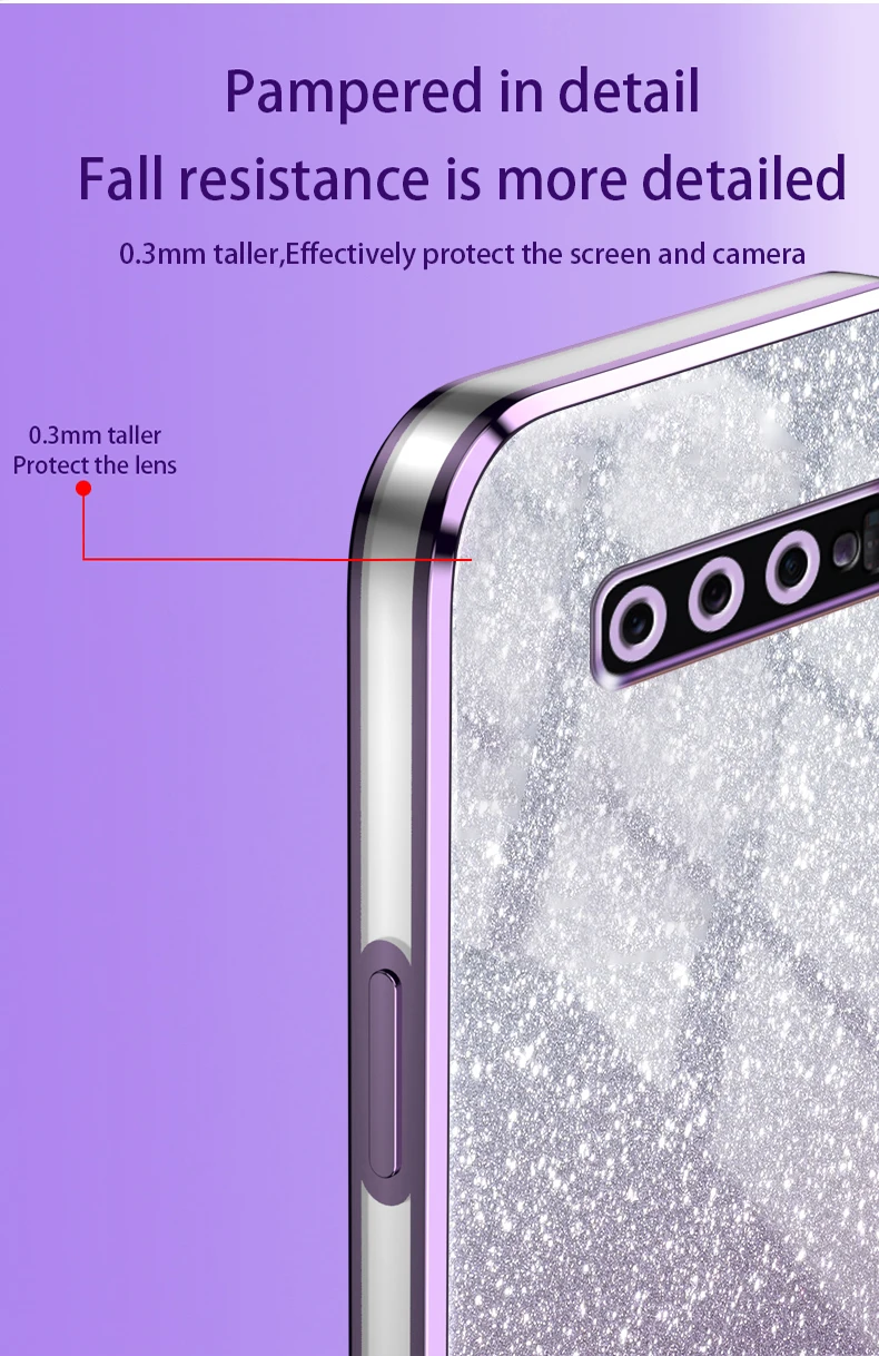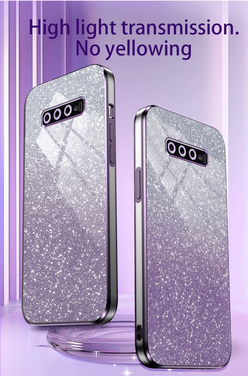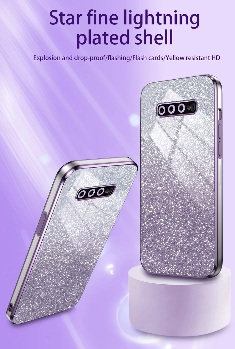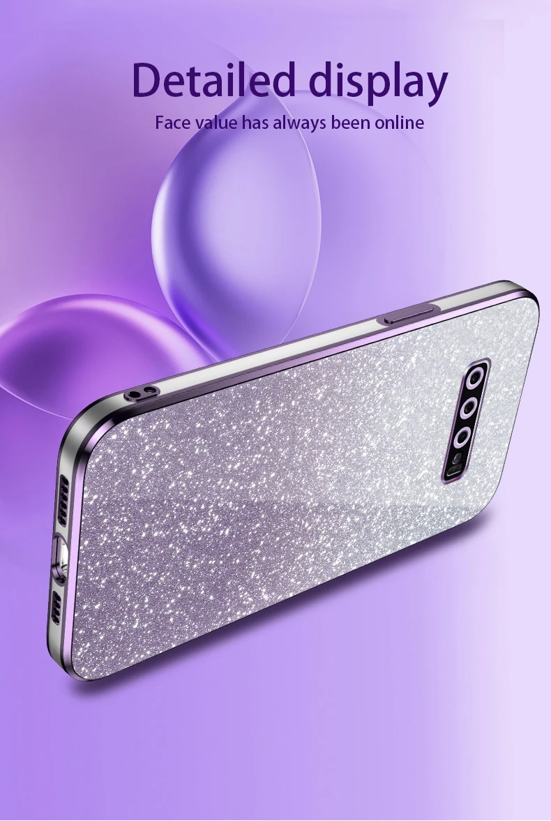 Comprar Funda chapada con purpurina degradada de lujo para Samsung Galaxy S10 Plus, funda protectora trasera de silicona suave a prueba de golpes para mujer S10plus S 10