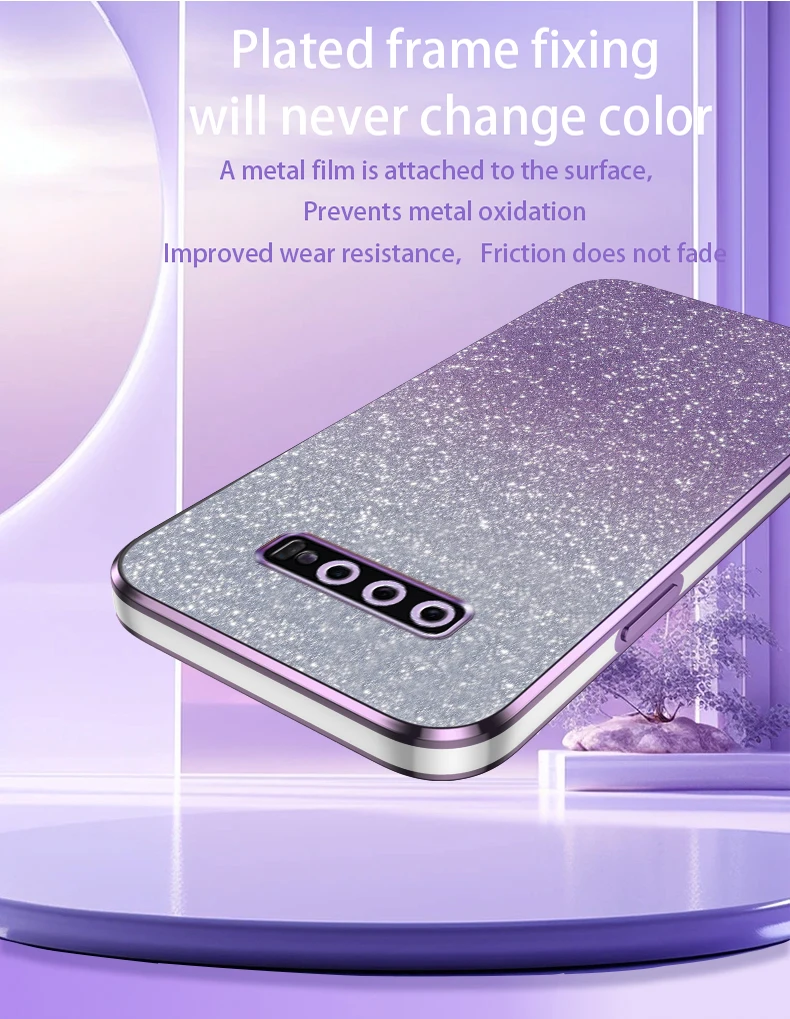 Funda chapada de brillo degradado de lujo para Samsung Galaxy S10 Plus, funda protectora trasera de silicona suave a prueba de golpes para mujer S10plus S 10