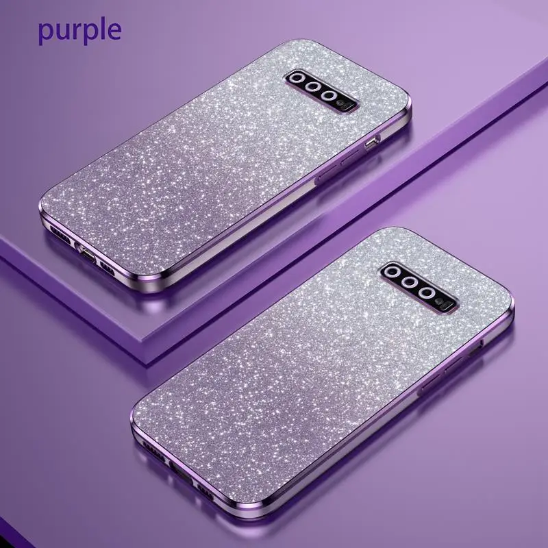 Comprar Funda chapada con purpurina degradada de lujo para Samsung Galaxy S10 Plus, funda protectora trasera de silicona suave a prueba de golpes para mujer S10plus S 10