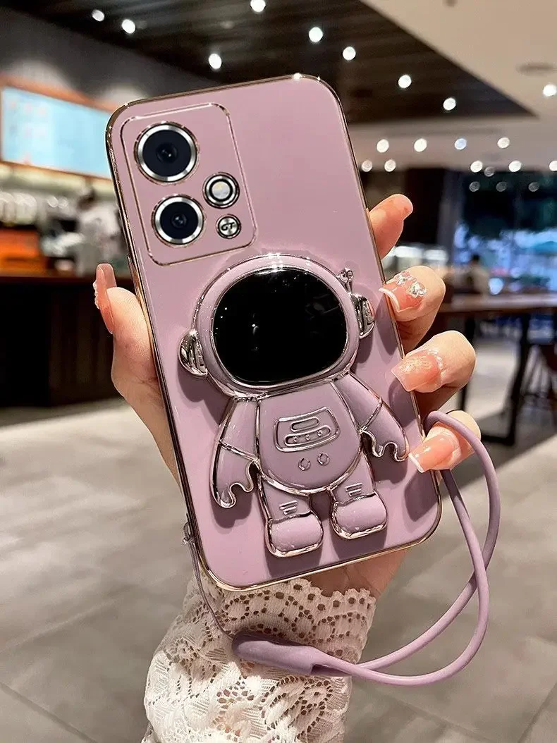 Funda chapada con soporte de astronauta de dibujos animados en 3D para Honor 200 Pro Honor 90 Smart 200 Lite, funda de silicona suave a prueba de golpes con cordón