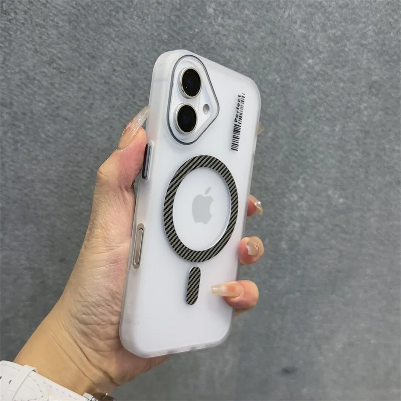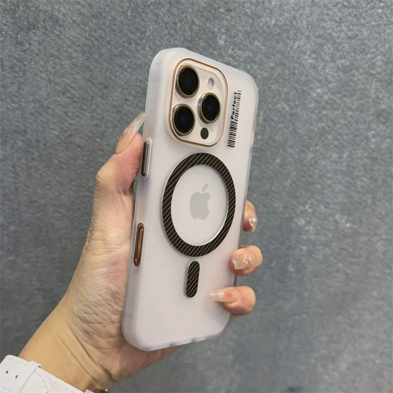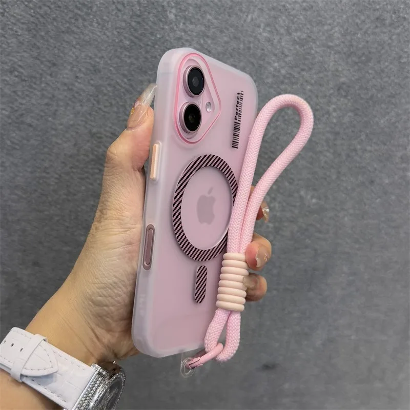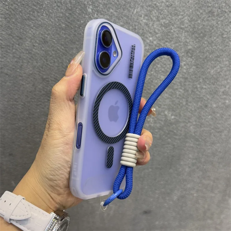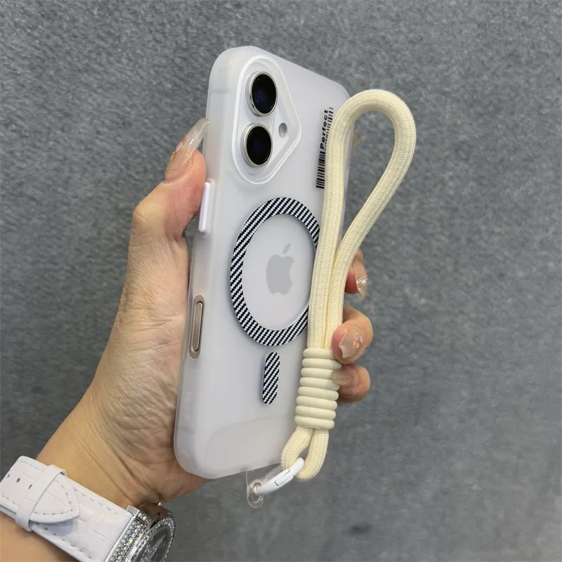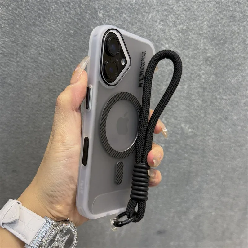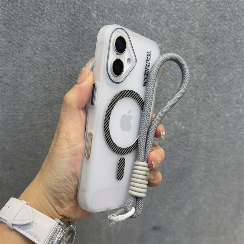Comprar Funda circular magnética de fibra de carbono translúcida de negocios para iPhone 13 11 12 14 15 16 Pro Max Plus Magsafe fundas con correa para la muñeca