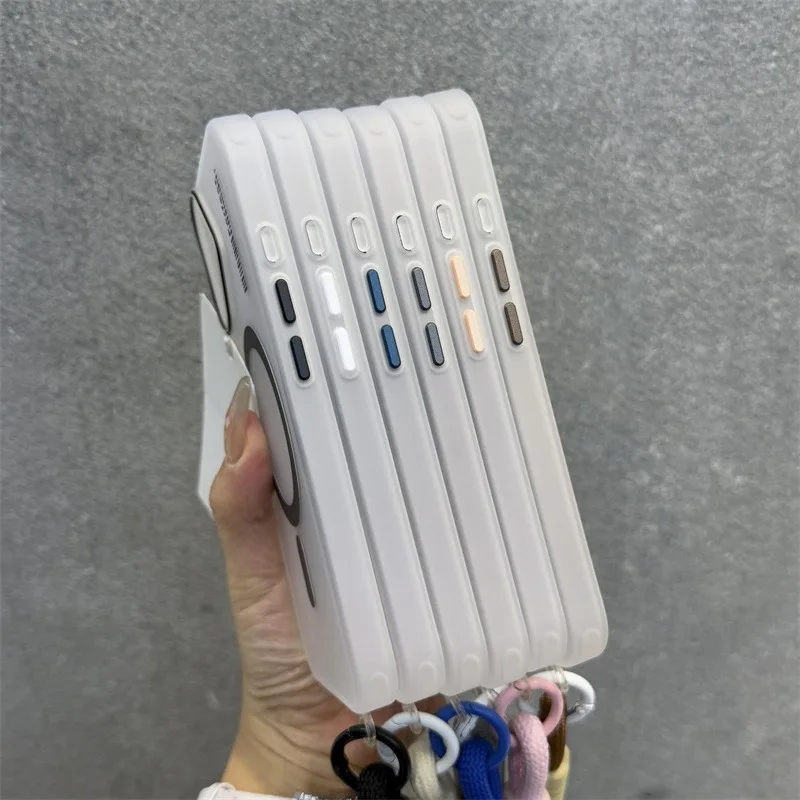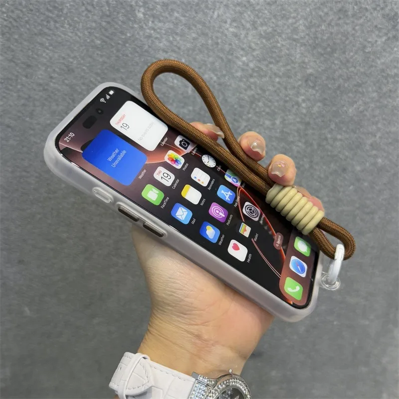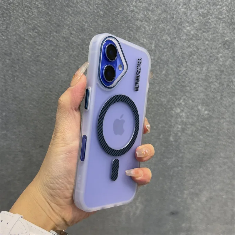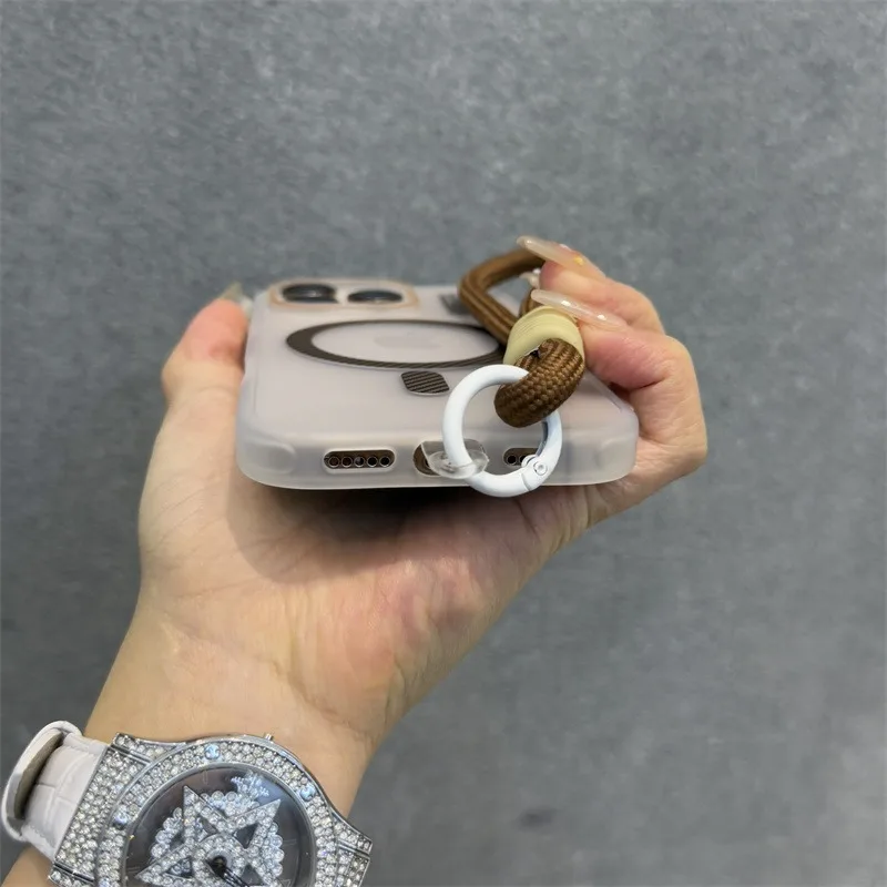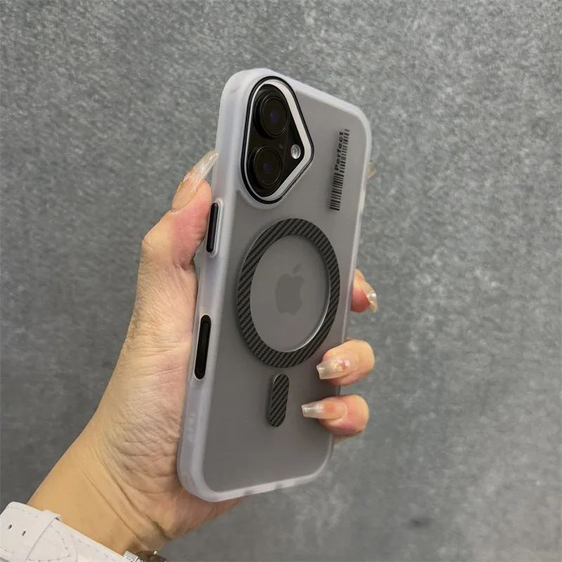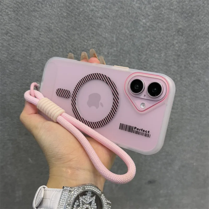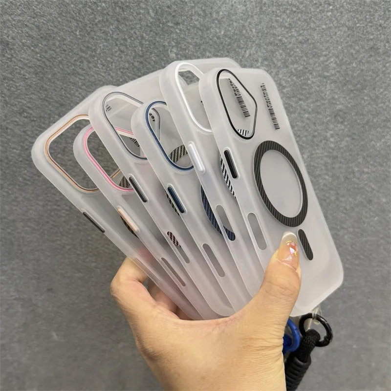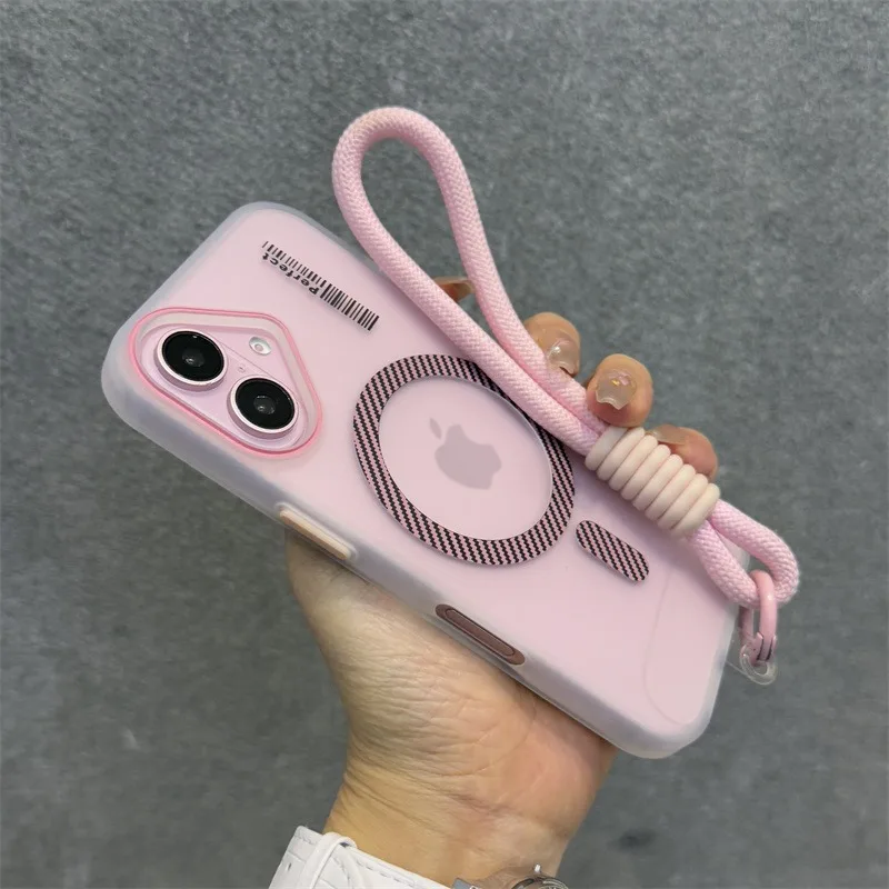Comprar Funda circular magnética de fibra de carbono translúcida de negocios para iPhone 13 11 12 14 15 16 Pro Max Plus Magsafe fundas con correa para la muñeca