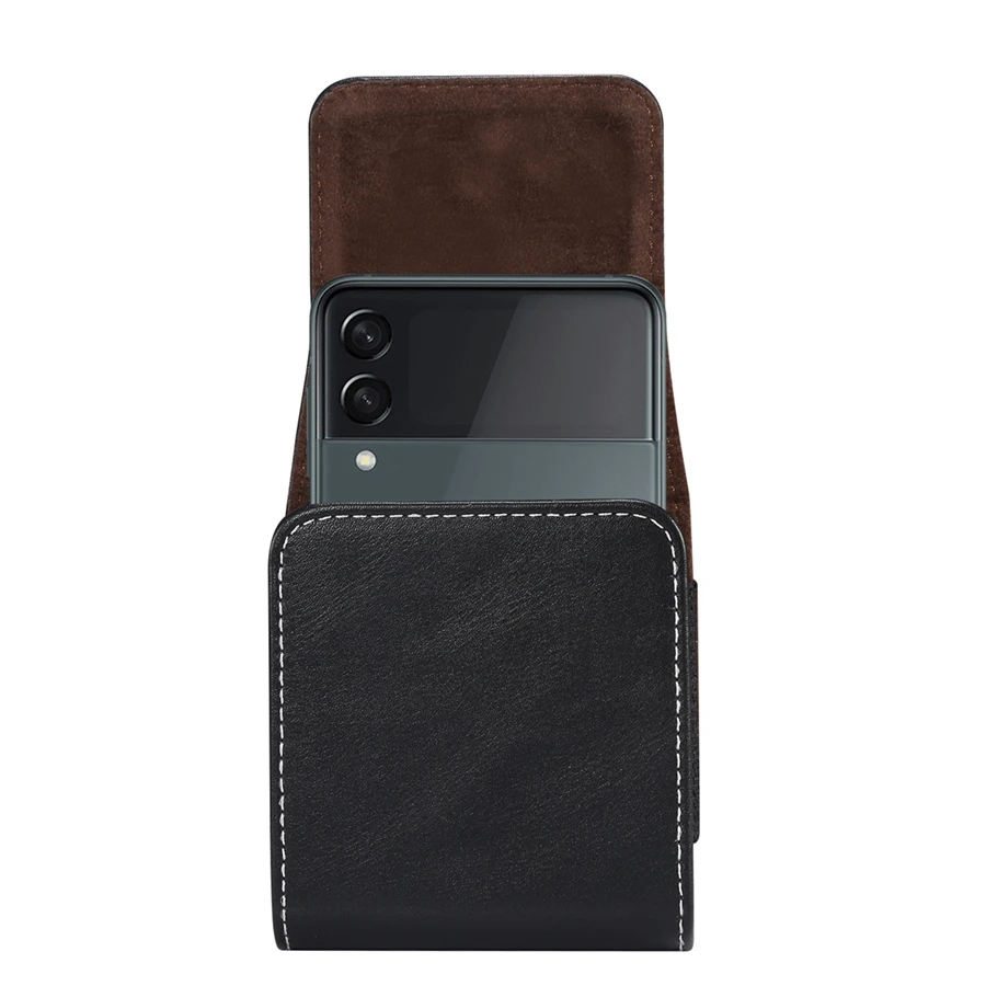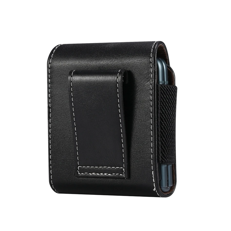 Funda de teléfono de cuero PU para Samsung Galaxy Z Flip 3/ 2 /1 5G Funda de teléfono con lazo de cinturón para Motorola RAZR 5G, riñonera con tapa para teléfono