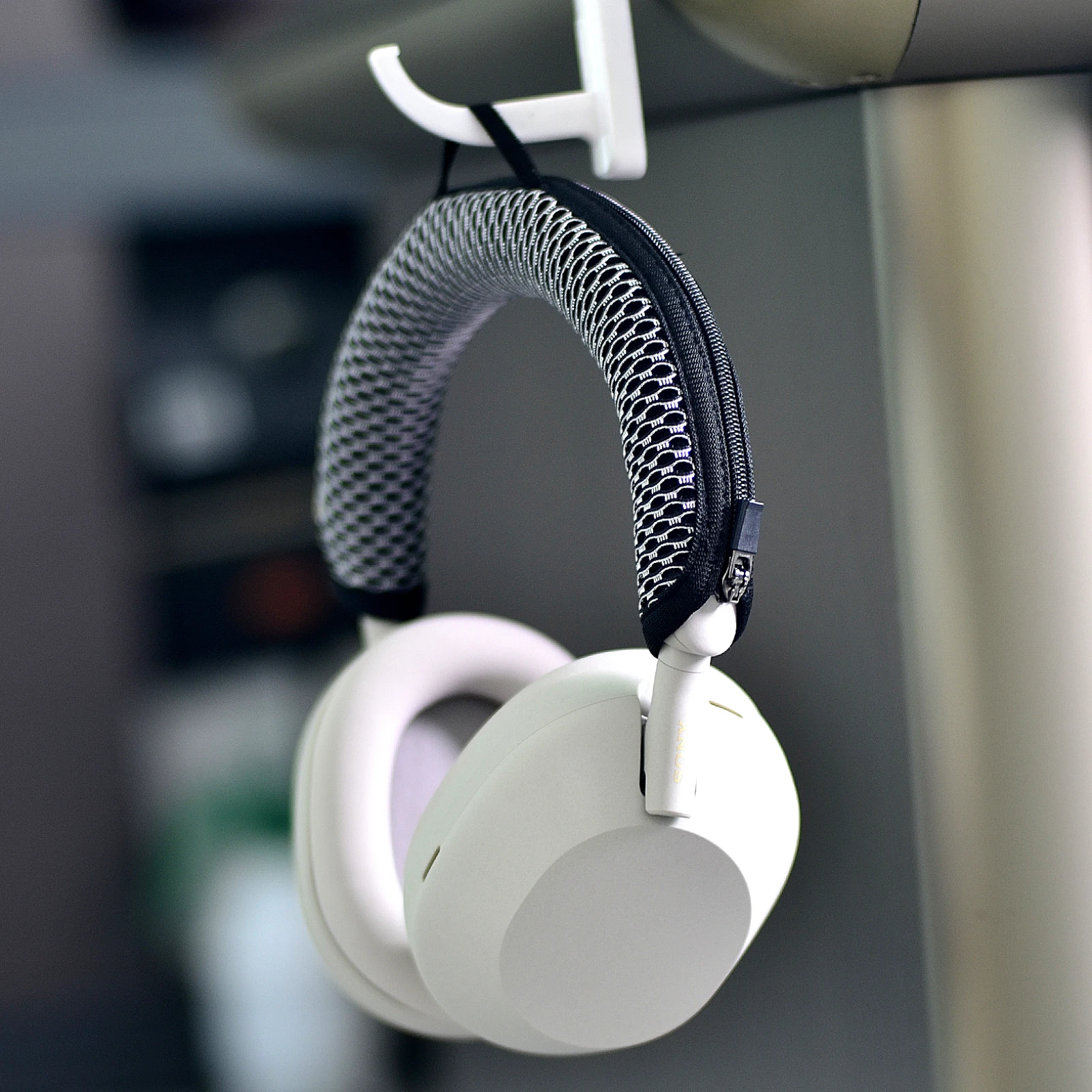 Protección útil para la diadema, además de la posibilidad de colgarla en un gancho.