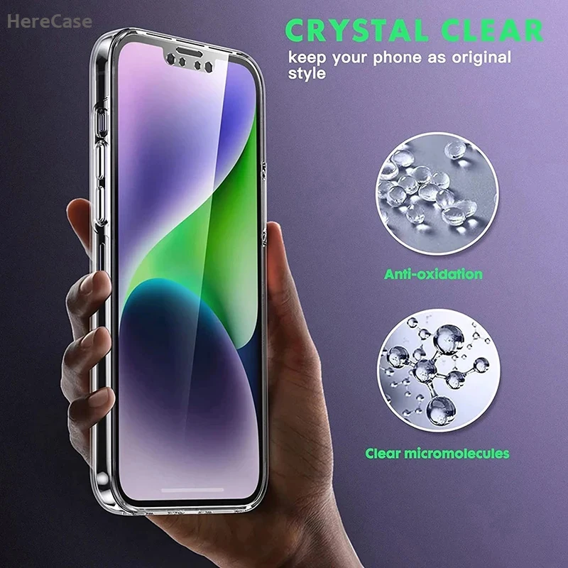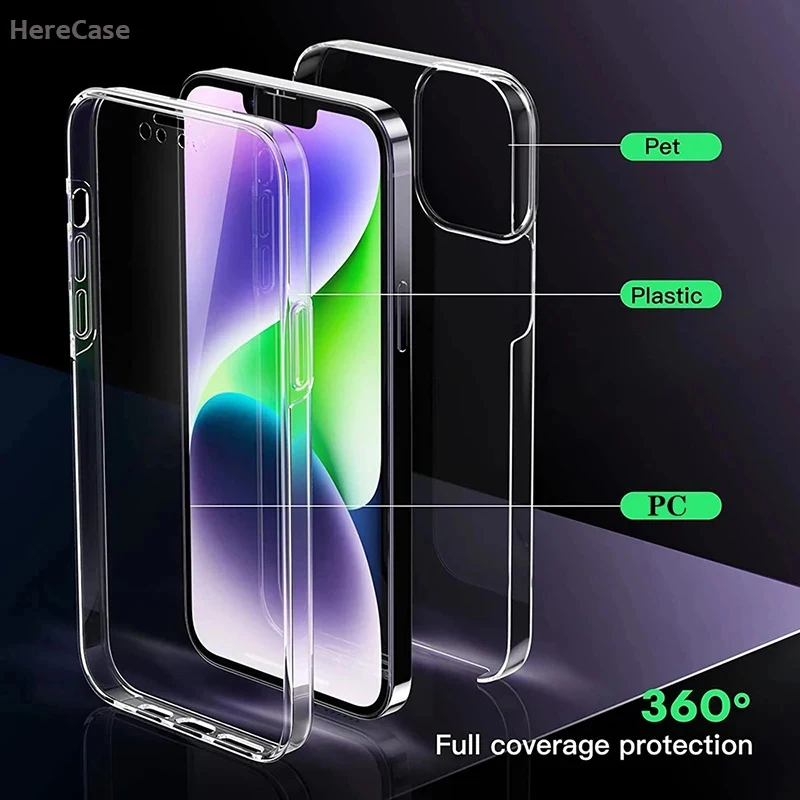 Comprar Funda completa de silicona para iPhone, carcasa dura de TPU transparente, híbrida, PC, 360, para iPhone 16 Pro Max, iPhone 16 Plus, 16 Pro, 2024