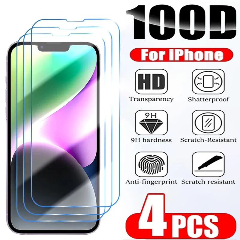 Comprar Funda completa de vidrio templado para iPhone, Protector de pantalla para iPhone 13, 15, 14, 12, 11 Pro, XR, X, XS Max, 6s, 7, 8, 14, 15 Plus, SE 2022, 4 unidades