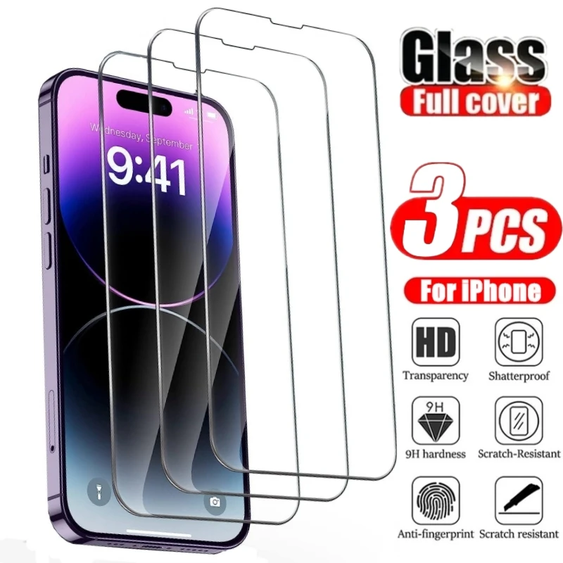 Comprar Funda completa de vidrio templado para iPhone, Protector de pantalla para iPhone 14, 15 Pro Max, 13, 12, 11 Pro, XS, Max, X, XR, 6s, 8, 7 Plus, 3 unidades