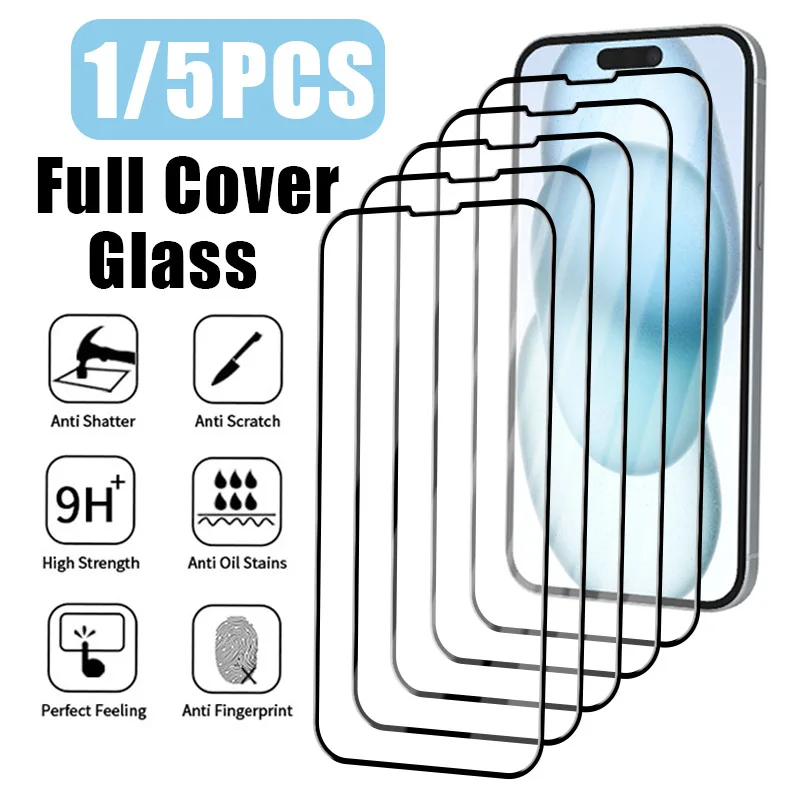 Funda completa de vidrio templado para iPhone, Protector de pantalla para modelos 14, 15, 13, 12, 11 Pro Max, SE 2020, 2022, 13, 12 Mini, 8, 7 Plus, 1 o 5 unidades