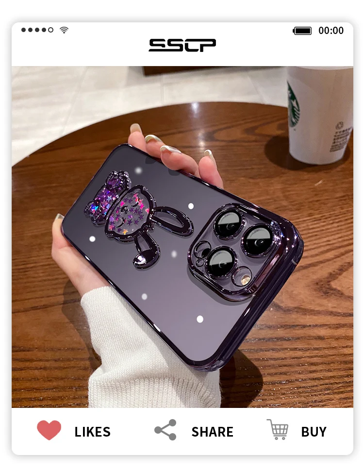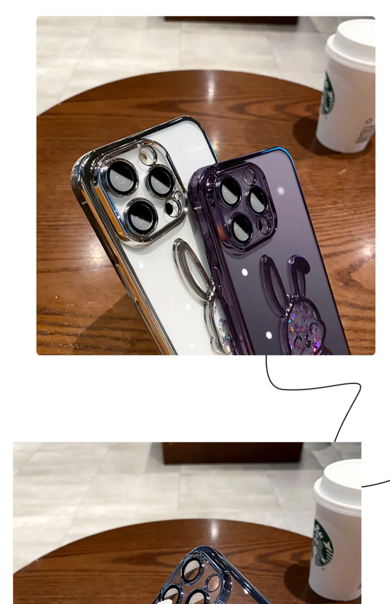 Comprar Funda de conejo de arena movediza con purpurina de lujo para iPhone 11, 12, 13, 14, 15 Pro Max, 14, 15 Plus, cubierta de silicona suave chapada transparente