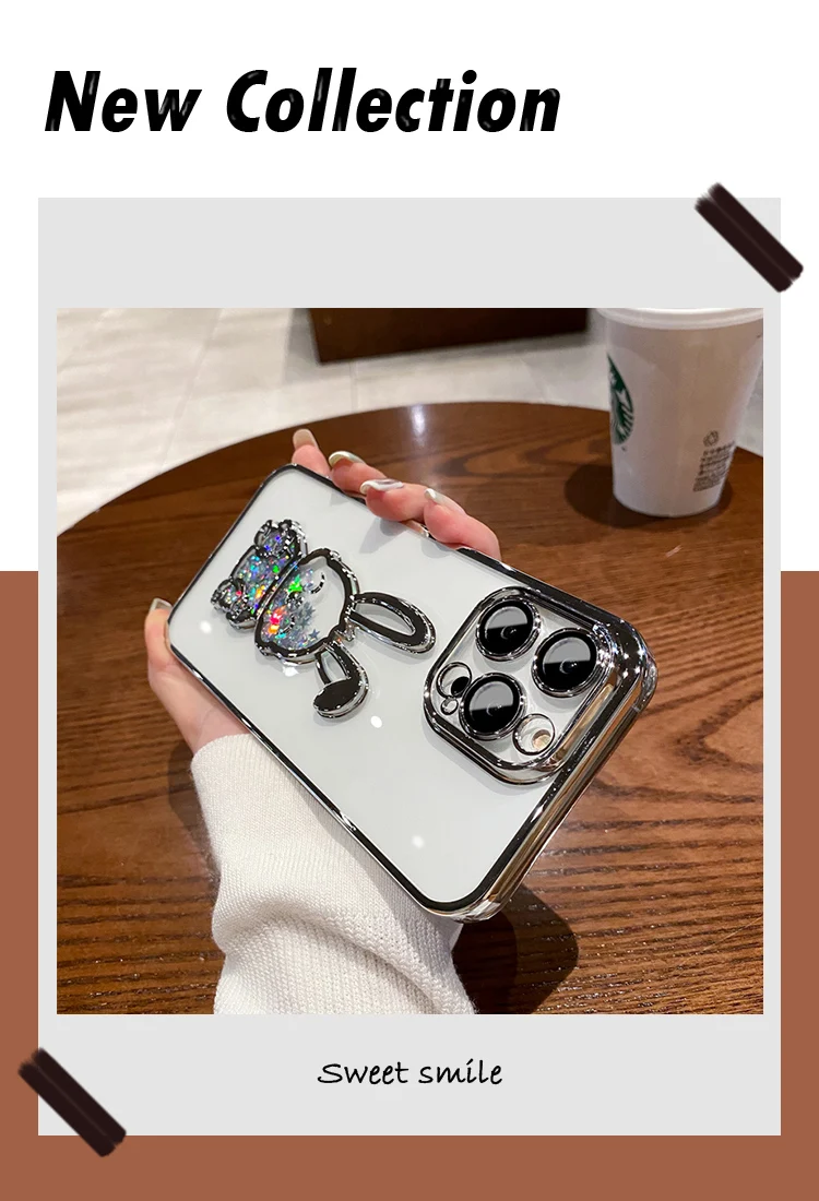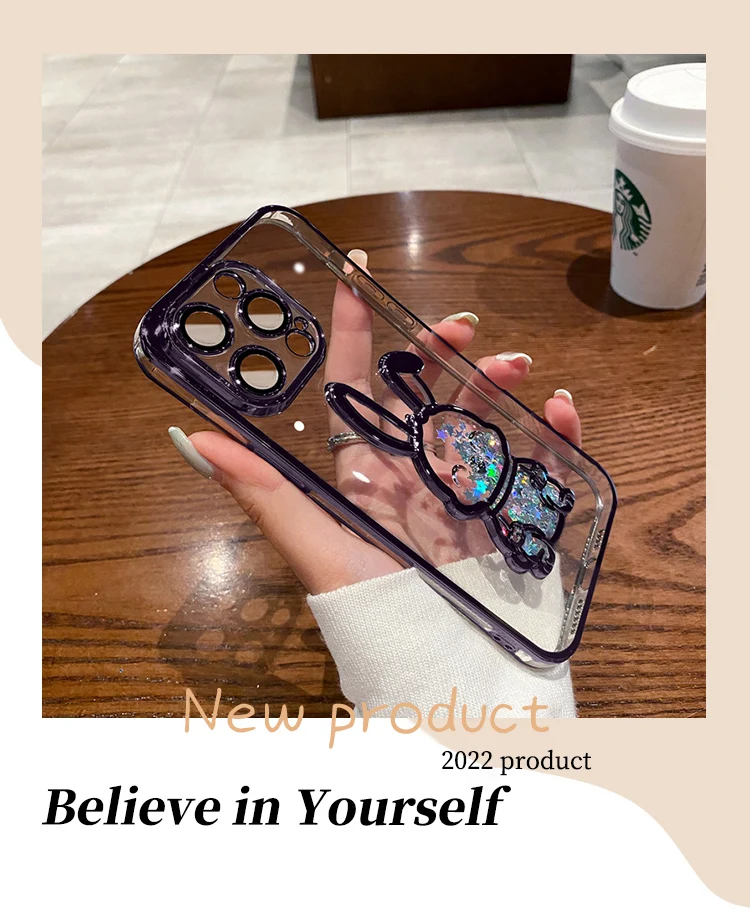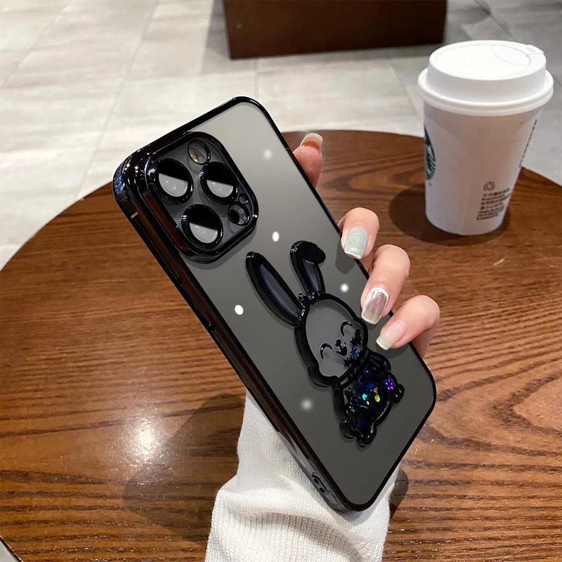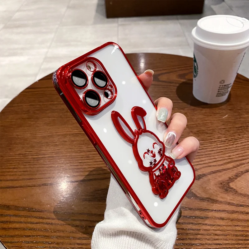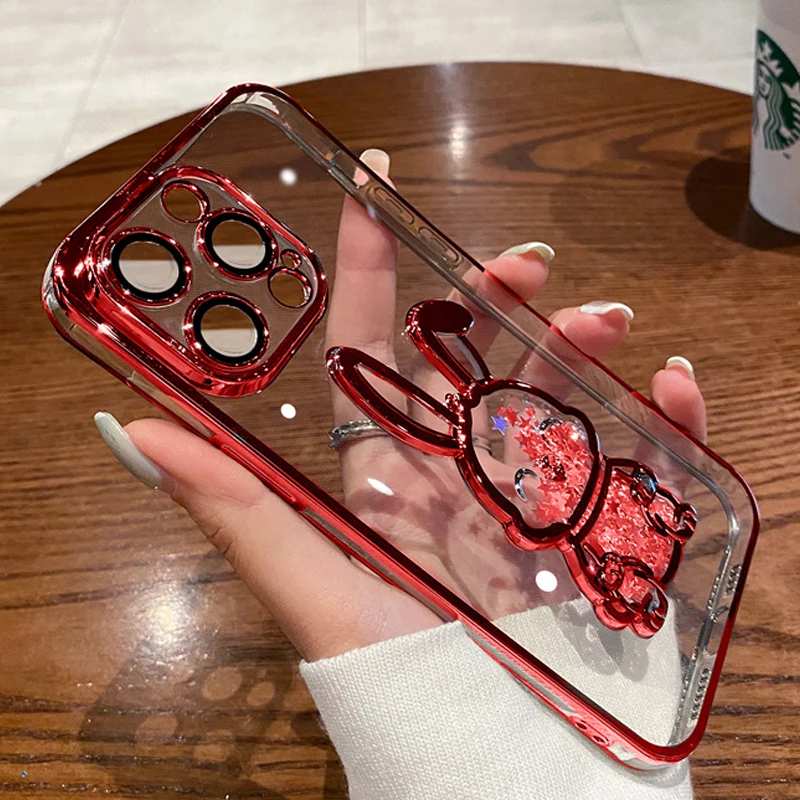 Funda de conejo de arena movediza con purpurina de lujo para iPhone 11, 12, 13, 14, 15 Pro Max, 14, 15 Plus, cubierta de silicona suave chapada transparente