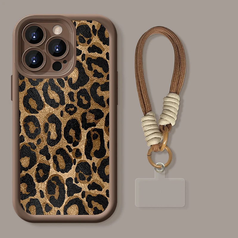 Funda con cordón y correa colgante con estampado de leopardo negro para OPPO A5 Pro Reno 14 13 12 11 PRO 10 PLUS A79 A60 13F 12F A5 F29 5G, funda suave