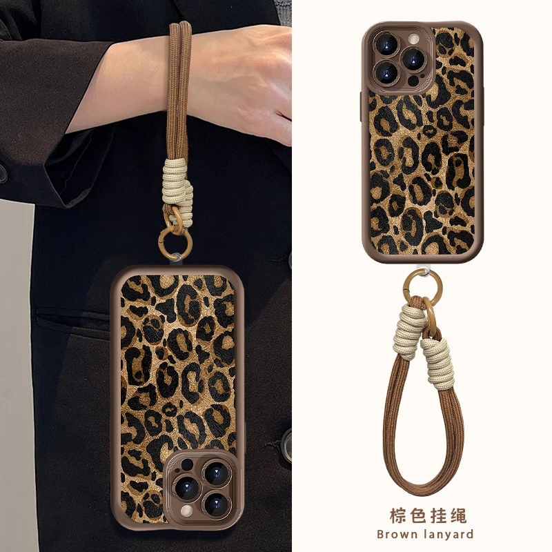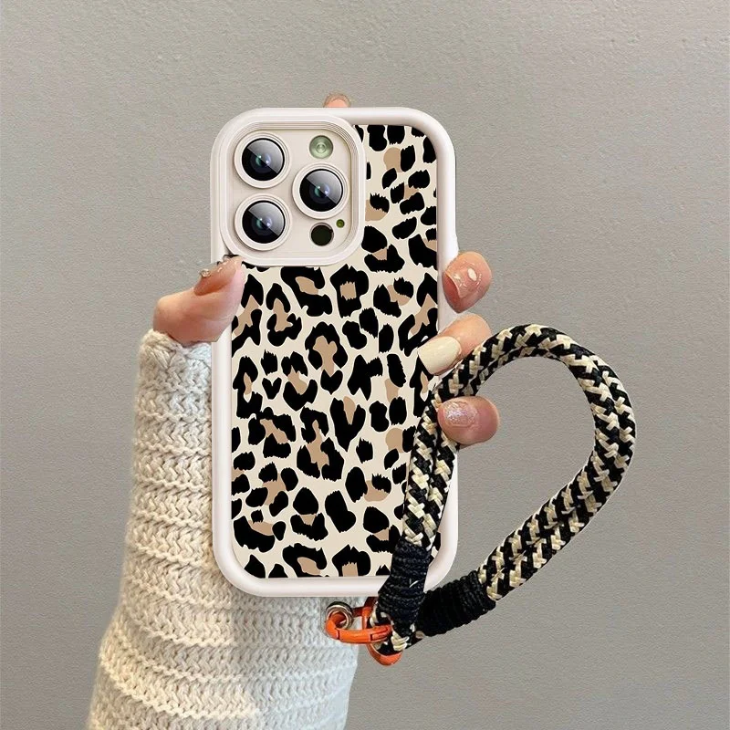 Comprar Funda con cordón y correa colgante con estampado de leopardo negro para Samsung Galaxy A15 A25 A05S A54 A53 A55 A26 A36 A56 A72 A21S A24