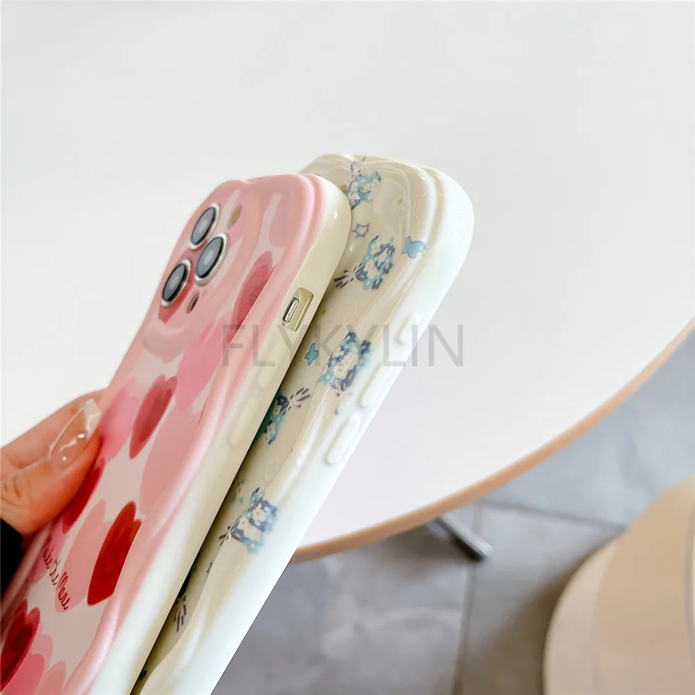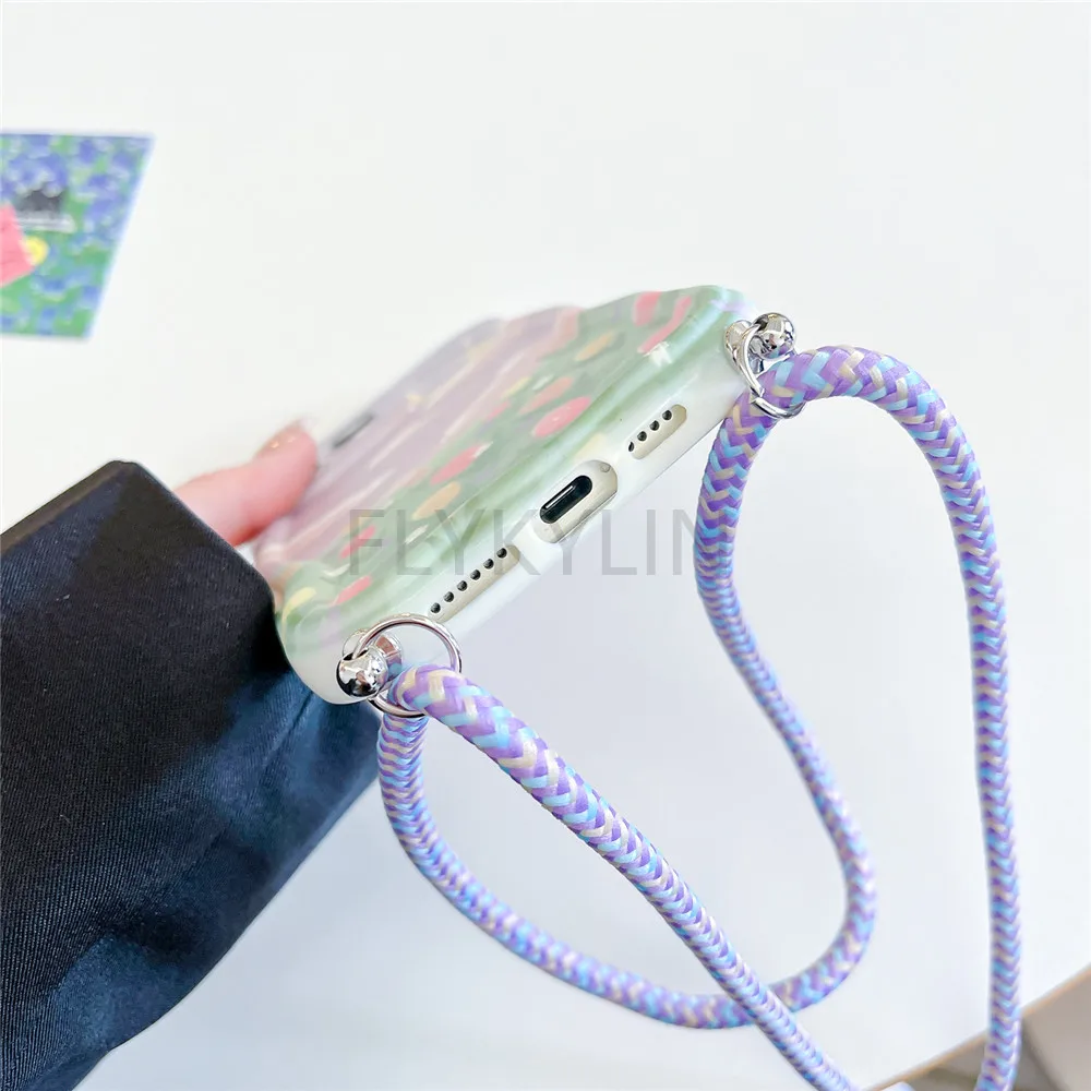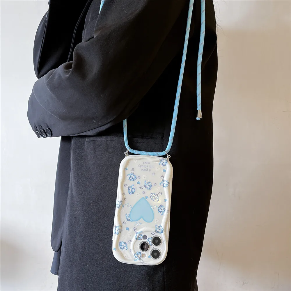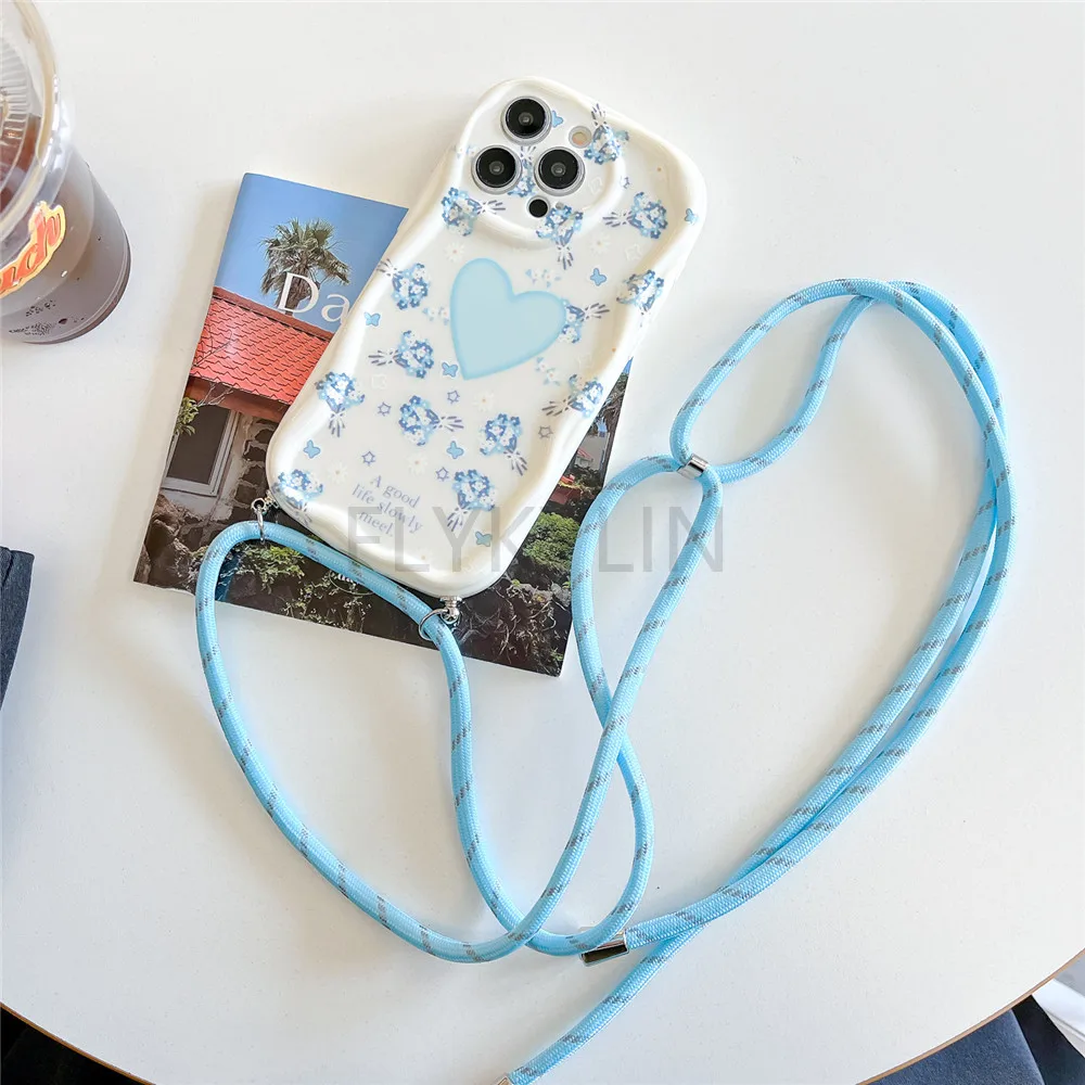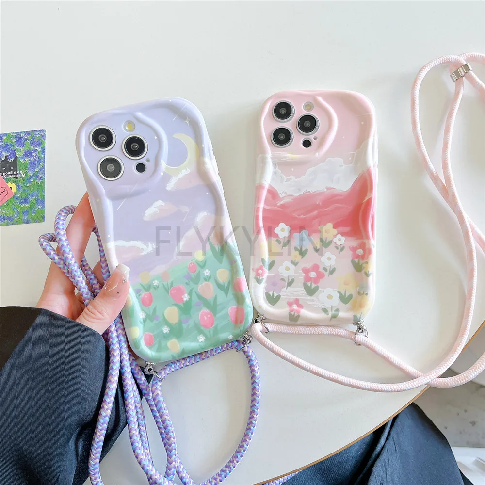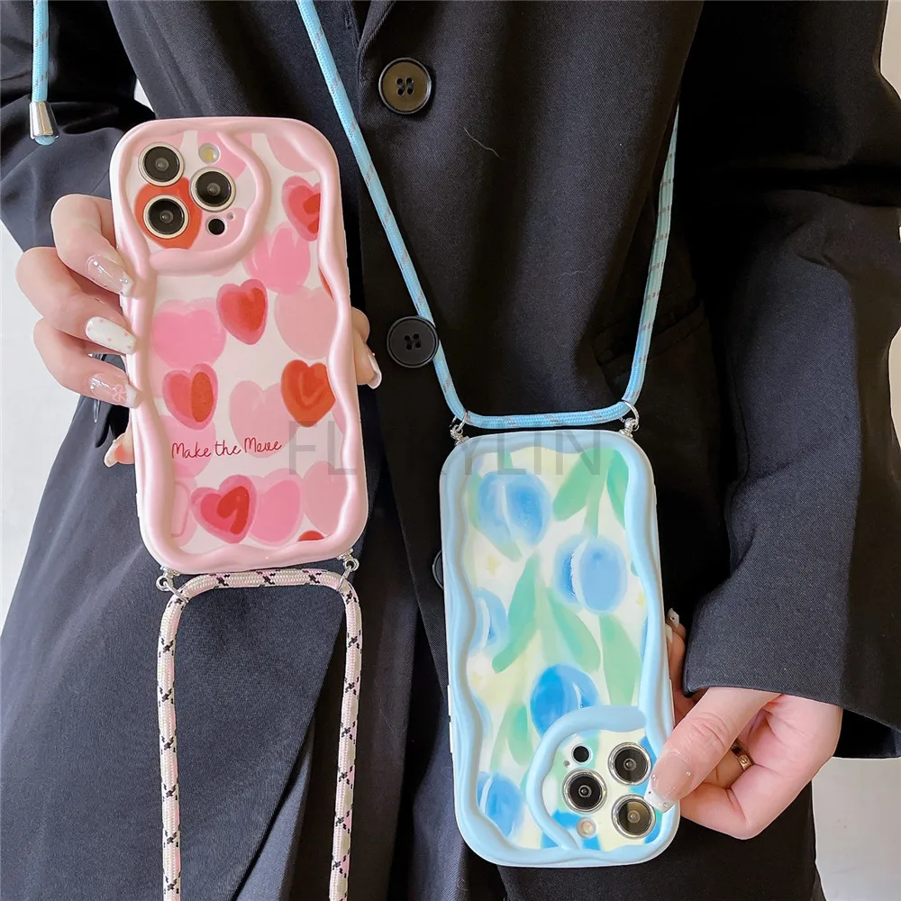 Funda con cordón cruzado para Samsung A55 A35 A05S A05 A15 A25 A24 A34 A54 A14 A13 A23 A33 A53 A52 A32 A51 cubierta con borde ondulado de flores