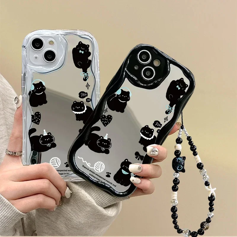 Funda con cordón de gato y espejo para Motorola Moto Edge 50 Fusion Pro Ultra G84 G14 G75 G35 G05 G15 G22 G30 G24 G54 G34 E13 E22 G35