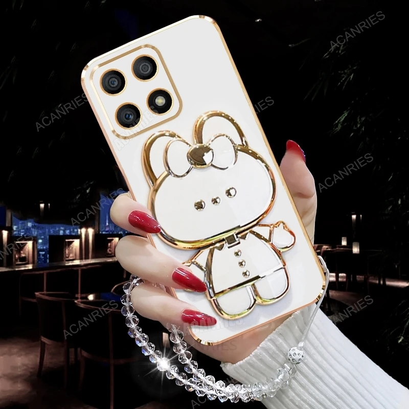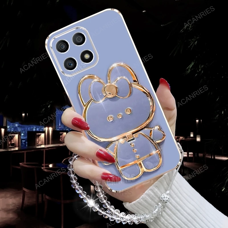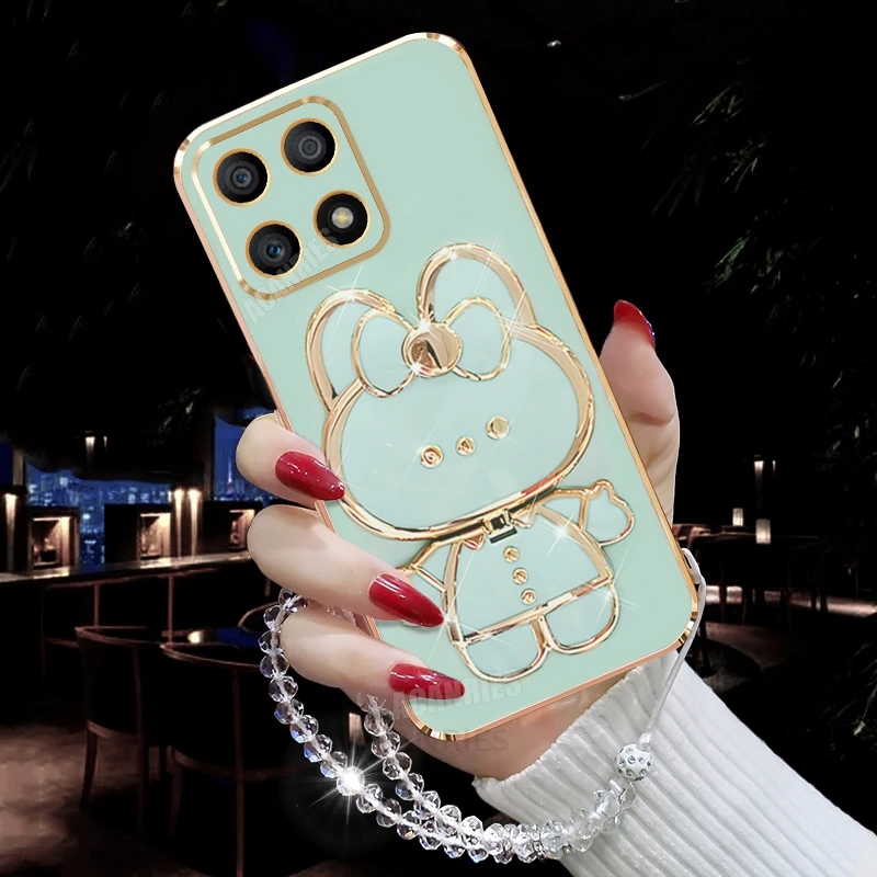 Funda con cordón y soporte de espejo Chapado Honorx8a para Huawei Honor X8 X8a X8b X6 4g 5g X6a X7 X7a X7b X9a Funda de silicona Honorx6