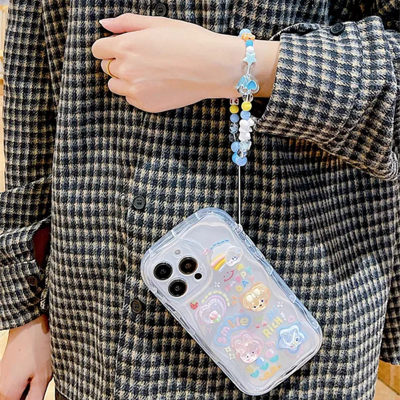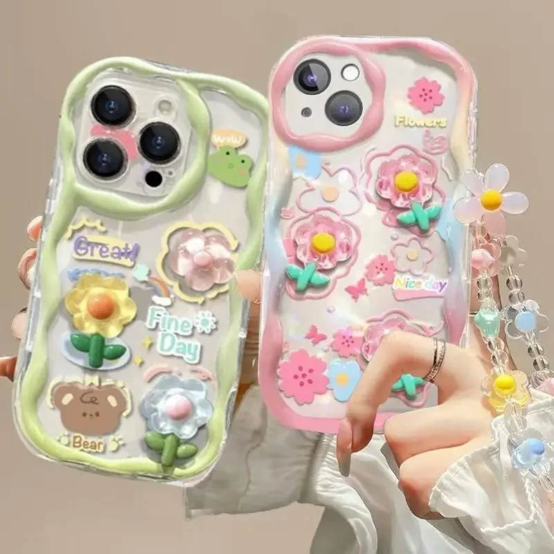 Funda coreana con cadena para muñeca y flor de oso 3D para Samsung Galaxy S25 FE S26 Ultra Plus A57 A37 A17 A56 A07 A55 A36 A16 5G