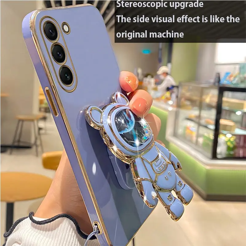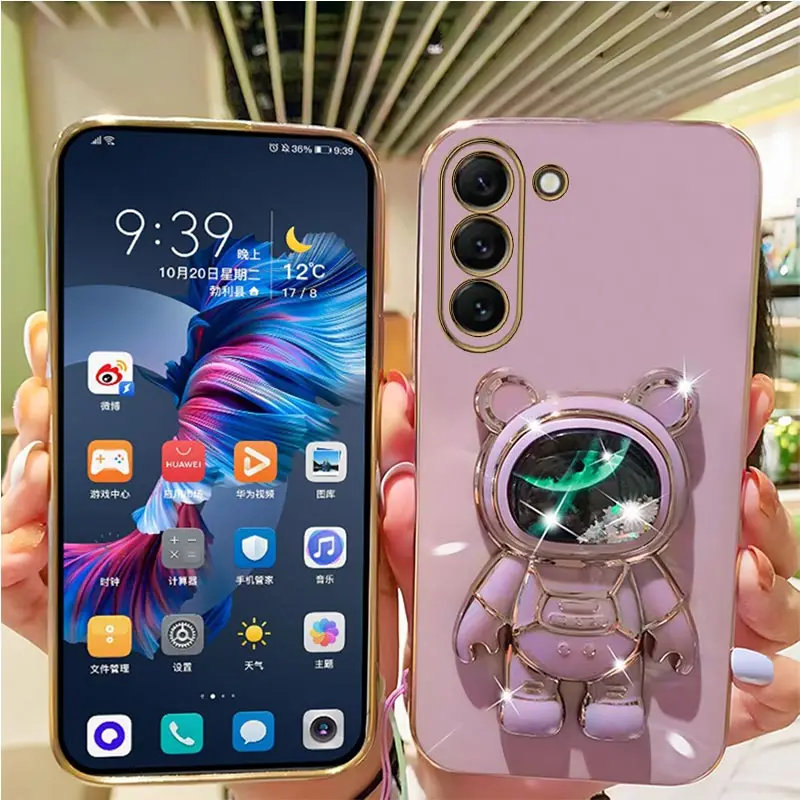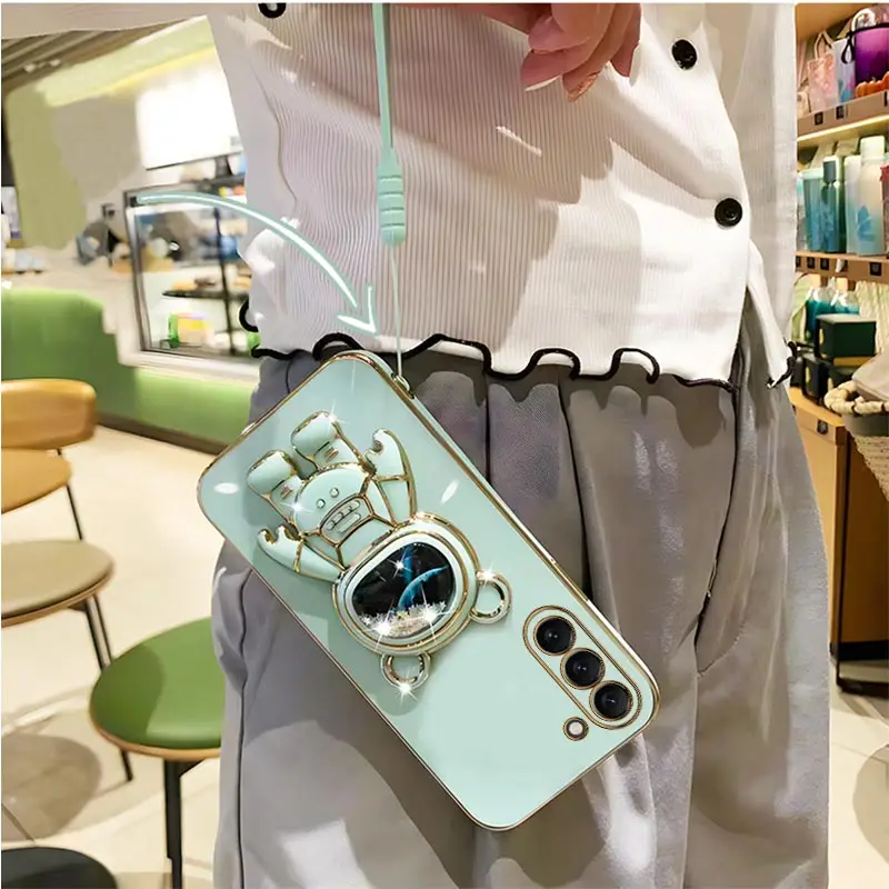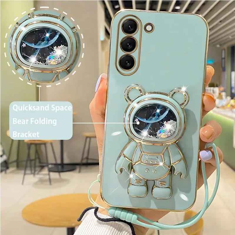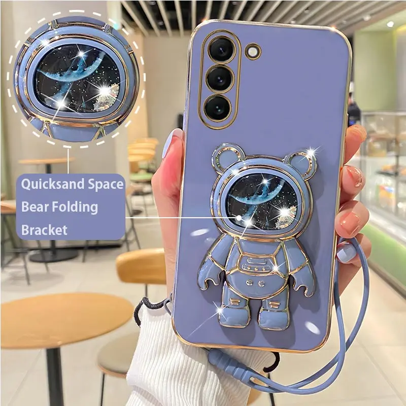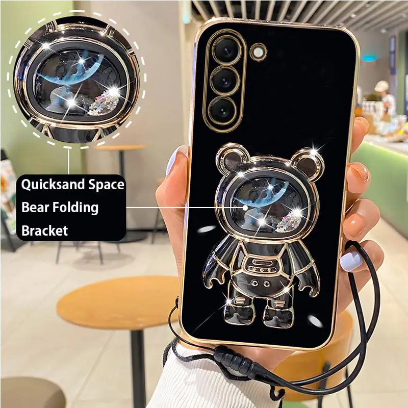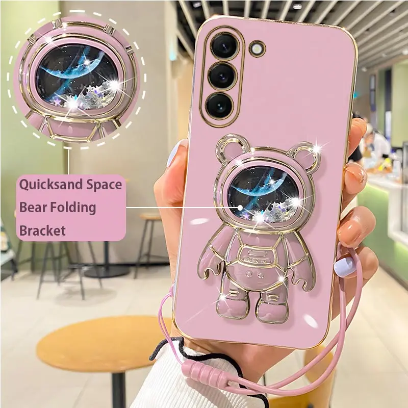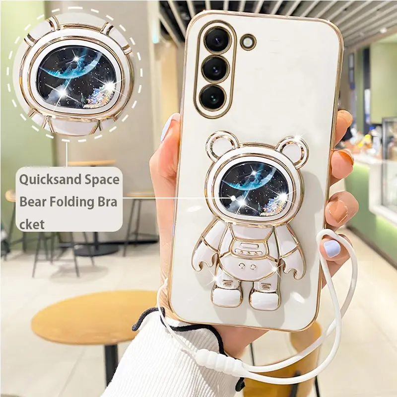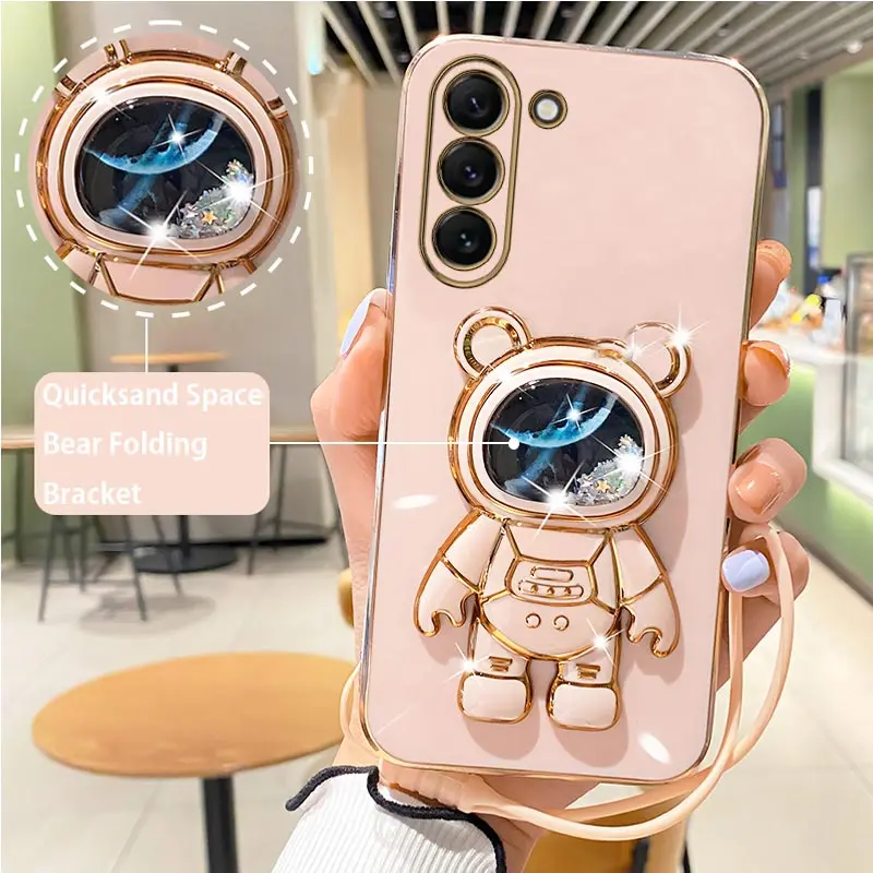 Funda con soporte para correa de astronauta de arena movediza para Samsung Galaxy S21 S20 S22 S23 S10 S9 S8 Note 10 20 Plus Ultra Stand Fundas