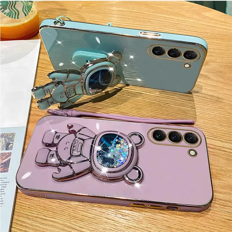 Funda con soporte para correa de astronauta de arena movediza para Samsung Galaxy S21 S20 S22 S23 S10 S9 S8 Note 10 20 Plus Ultra Stand Fundas