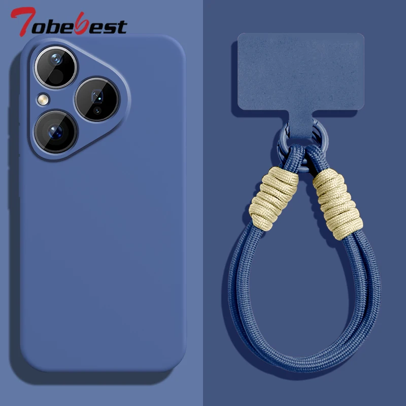 Funda con correa de silicona líquida para Huawei Pura 80 70 Ultra P60 P50 P40 P30 Lite Pro, funda protectora para lente de cámara