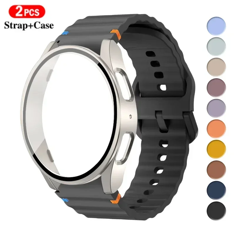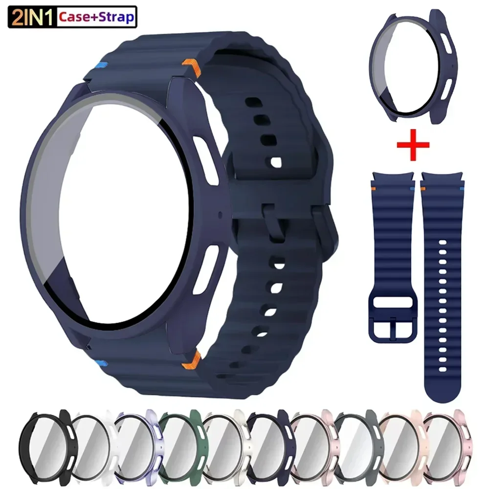 Funda + Correa para Samsung Galaxy Watch 7 40mm 44mm pulsera de silicona película de pantalla de vidrio templado funda protectora parachoques