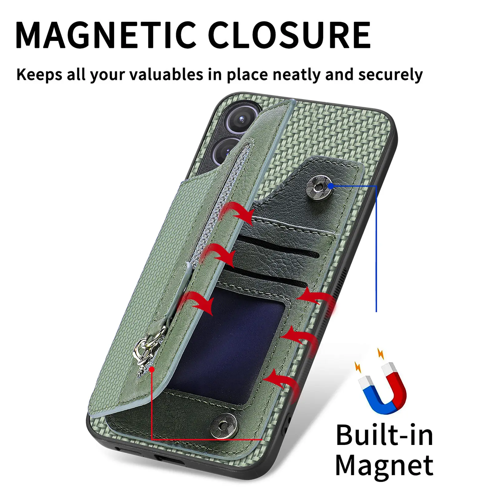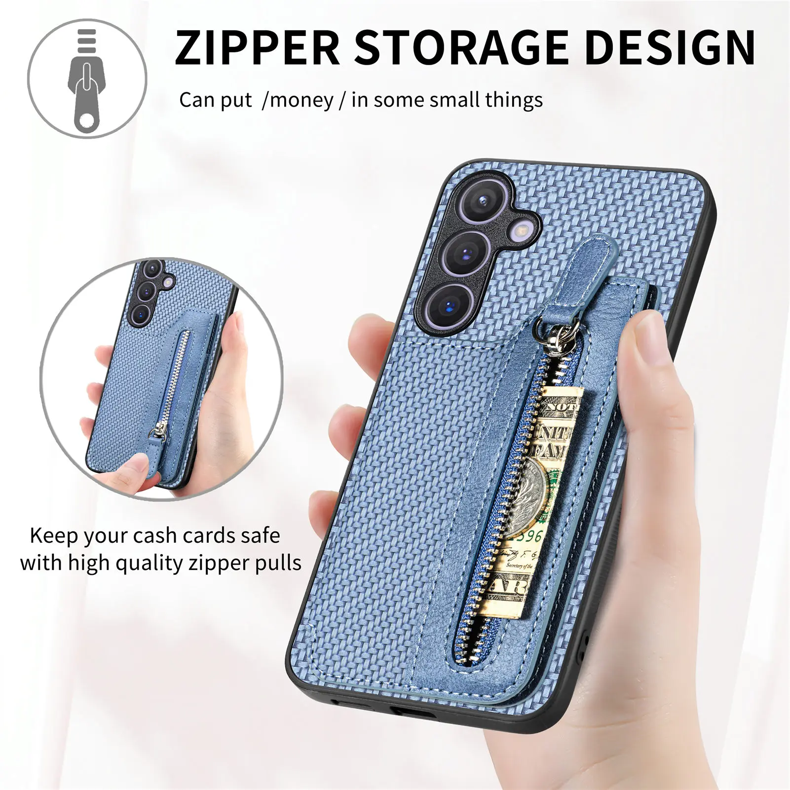 Funda con cremallera para Samsung Galaxy A04, A14, A24, A34, A54, A05, A15, A25, A33, A72, A73, S21 FE, S22 Plus, S23, S24 Ultra