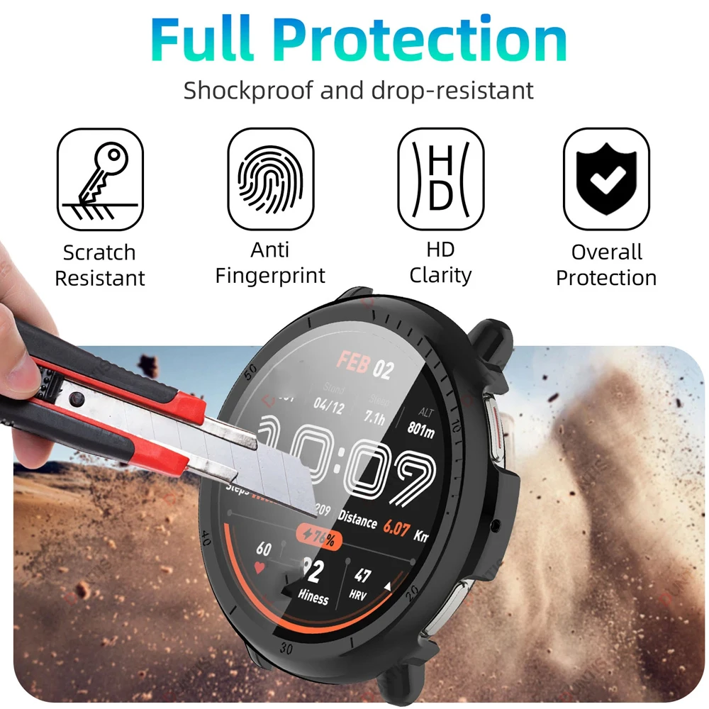 Comprar Funda de cristal dura para Amazfit Active 2, funda protectora de pantalla antiarañazos para reloj inteligente Huami Amafit Active 2, accesorios