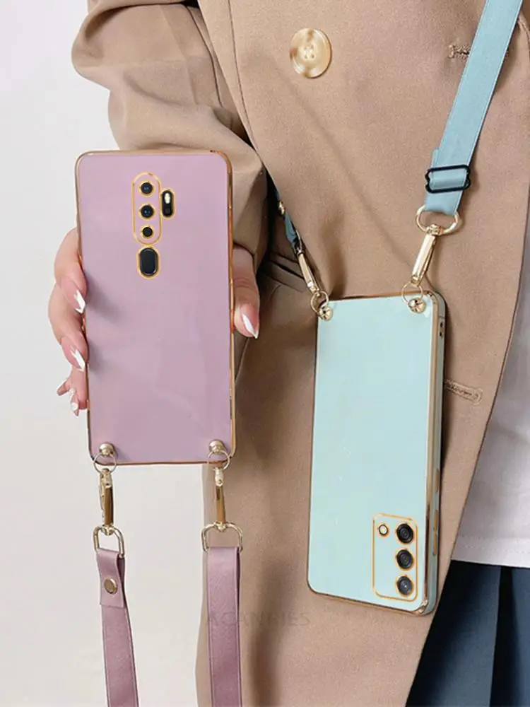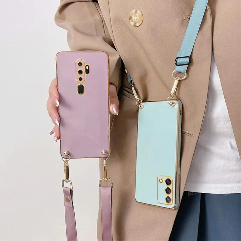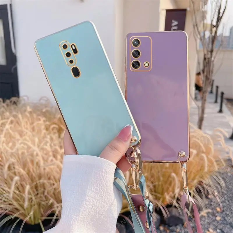 Funda chapada con cordón cruzado para Oppo A9 A5 2020 A74 A54 A53 A57 A52 A16 A92 A93 A94 A17 A58 Correa de cordón Funda trasera de silicona