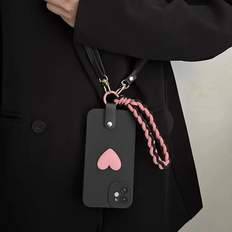 Funda cruzada con cordón para muñeca y corazón de amor para Samsung Galaxy M55 M35 M15 M34 M54 M14 M53 M33 M23 M12 5G, funda de silicona