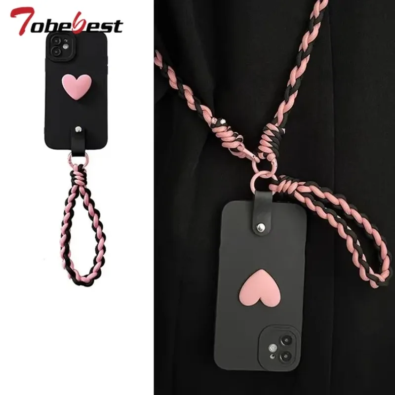 Comprar Funda cruzada con cordón para muñeca, funda de corazón de amor para Samsung Galaxy M55 M35 M15 M34 M54 M14 M53 M33 M23 M12 5G, funda de silicona