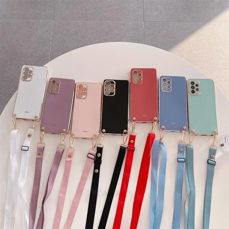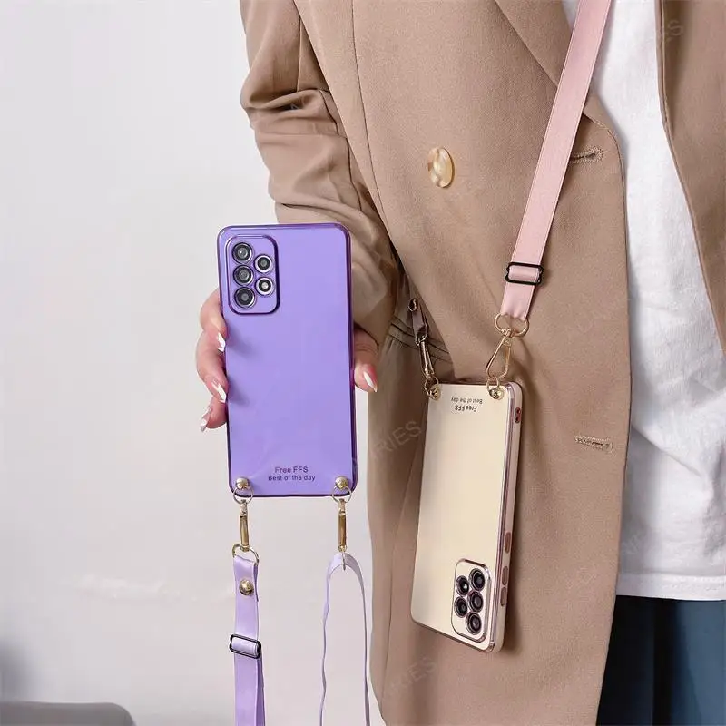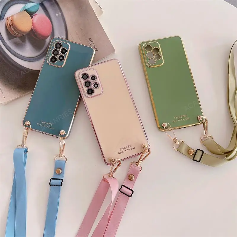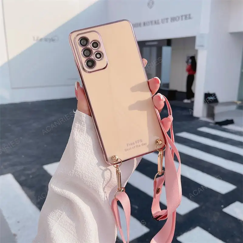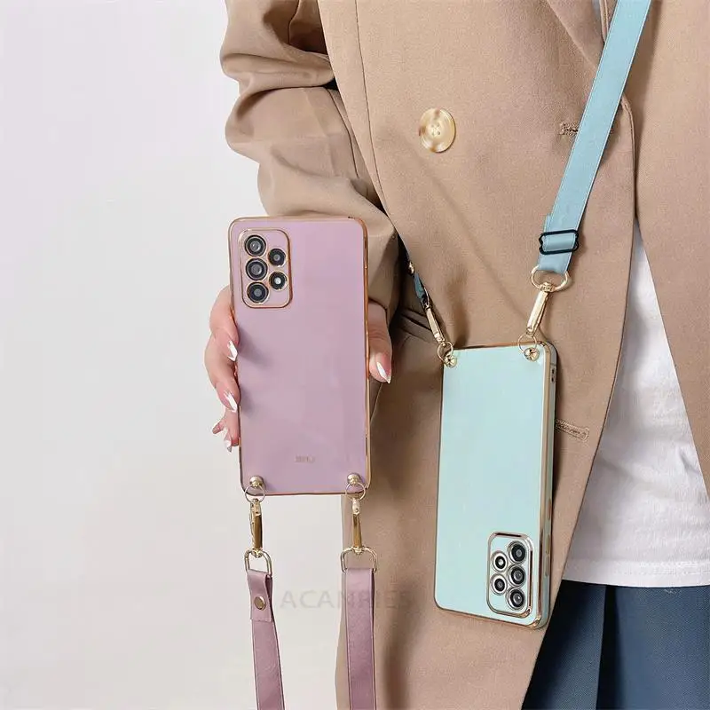 Comprar Funda cruzada con revestimiento de cordón para Samsung Galaxy A53 A52 5G A13 A33 A32 4G A73 A23 A72 funda de silicona con correa de cordón A 53 52 13 33