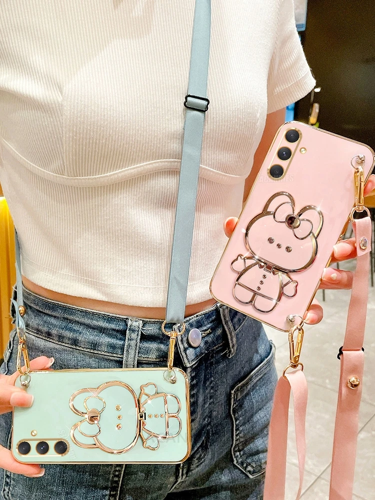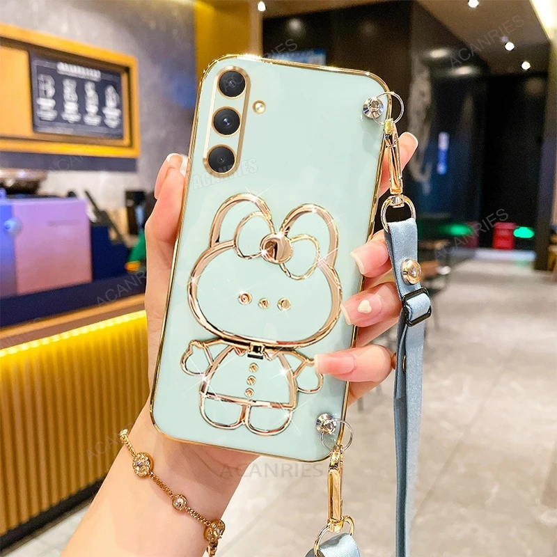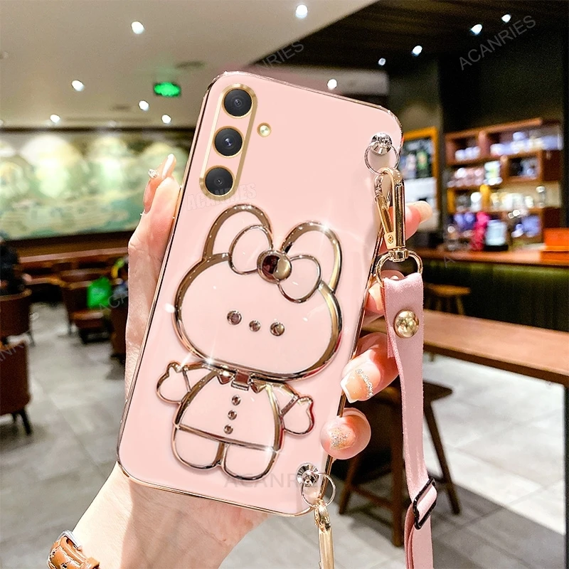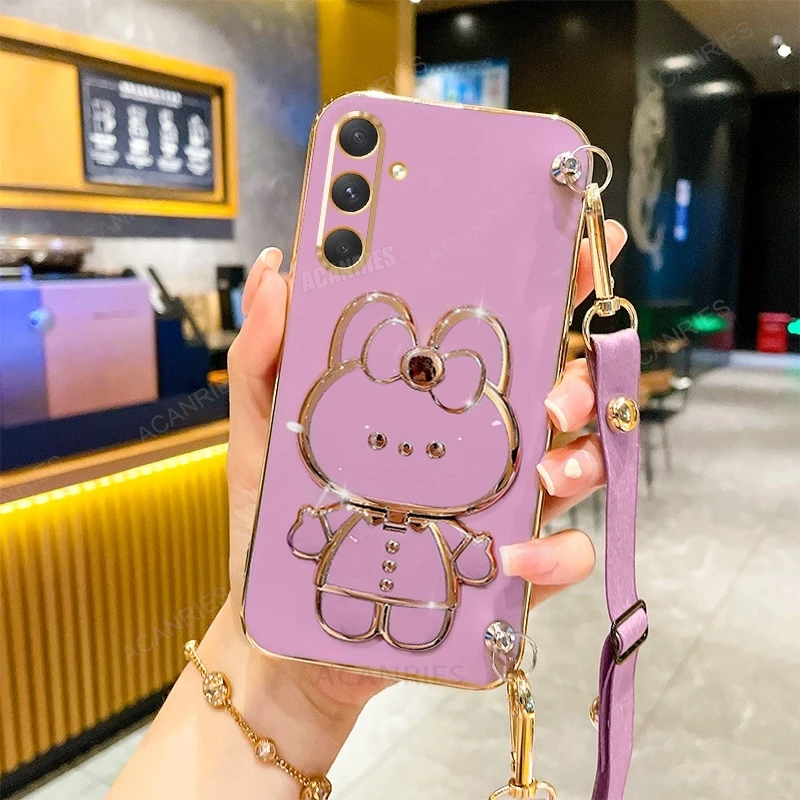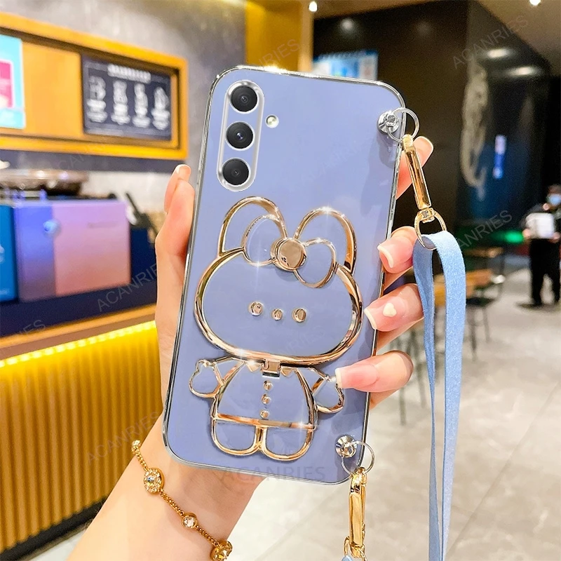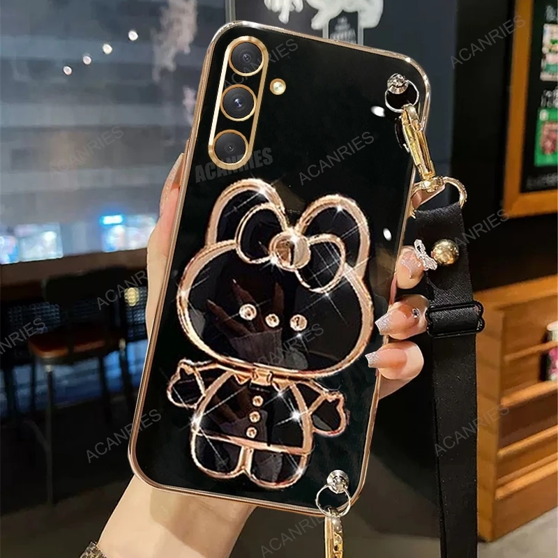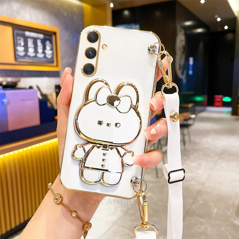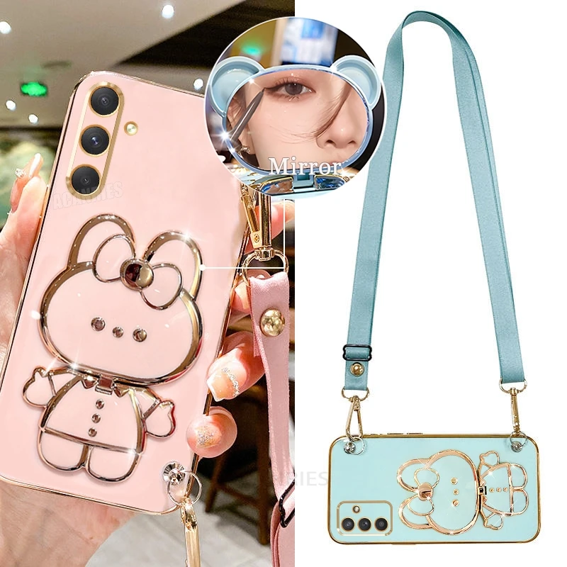 Funda con soporte de espejo con cordón cruzado para Samsung Galaxy A15 A25 A35 A55 A14 A24 A34 A54 A05s M55 M15 M14 M54 Funda suave de silicona