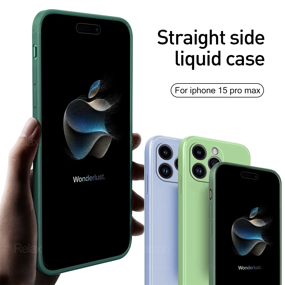Comprar Funda cuadrada de silicona líquida para iPhone, carcasa a prueba de golpes para iPhone 15 Pro Max, 15 Plus, 15 Pro Max