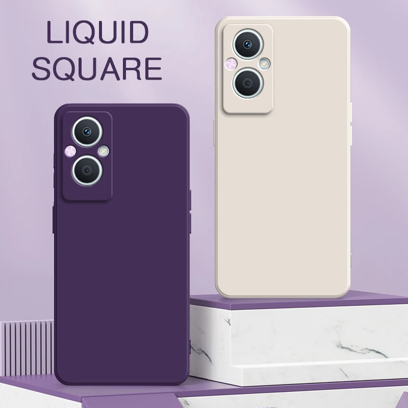 Comprar Funda cuadrada de silicona líquida de lujo para OPPO F9 F11 F15 F19 F21 Pro Plus 5G, funda protectora trasera de teléfono suave a prueba de golpes 360